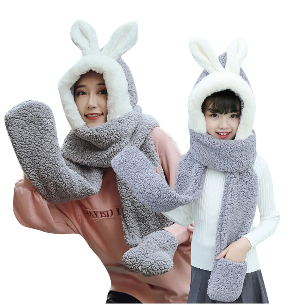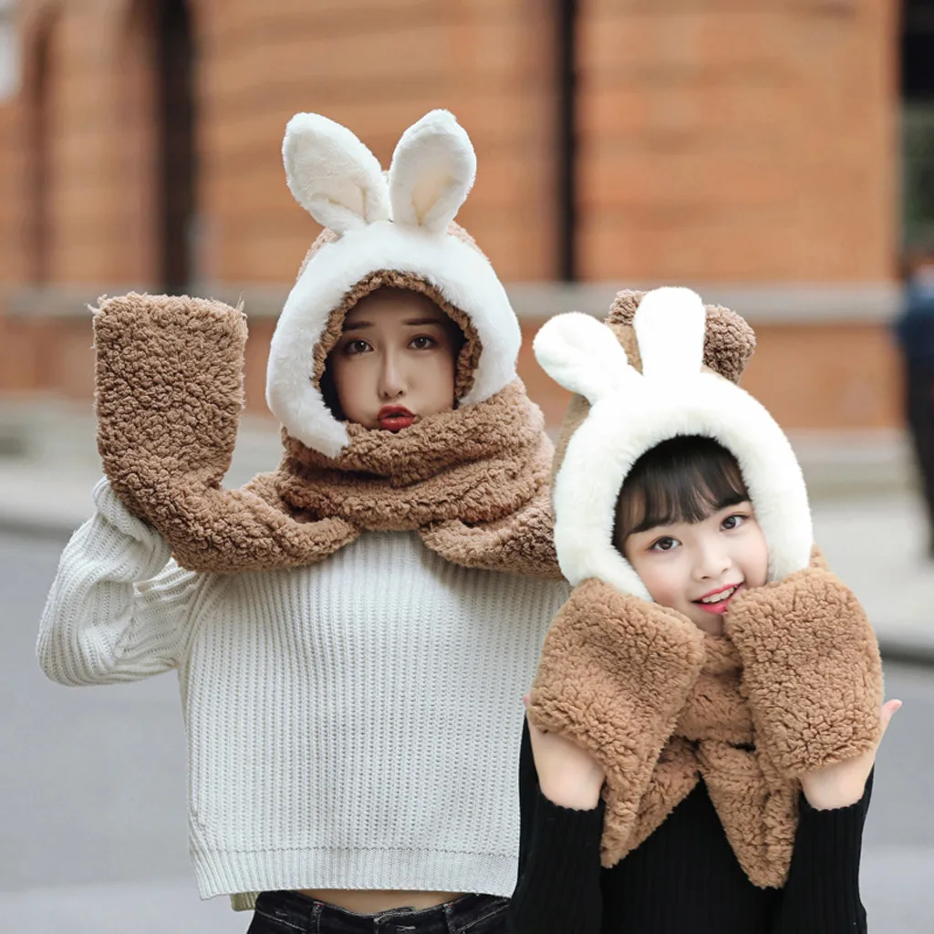 Женская зимняя плюшевая Толстая Милая мультяшная шапка с ушками, теплая плюшевая шапка