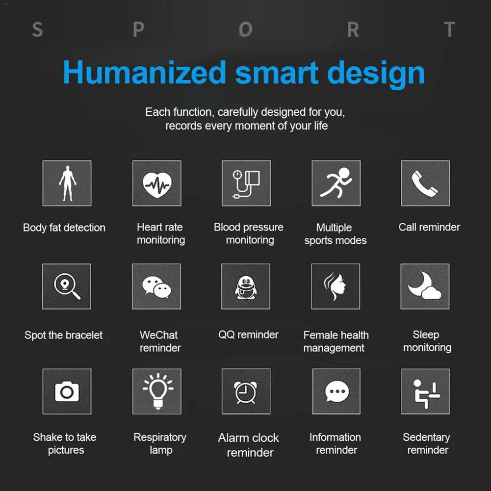 Основные Особенности: Функция контроля жира в теле, профессиональное тестирование данных о составе человеческого тела, подробный список из шести индикаторов. Предупреждение о умственном здоровье для женского физиологического цикла. Непрерывной 24-часовой мониторинг частоты сердечных сокращений с сверхнизкое энергопотребление Экологичный ТПУ ремешок, ручная работа в одиночной и бесчувственной одежде. Разрешение высокой четкости 1,08 цветной экран, динамический и лаконичный интерфейс пользовательского интерфейса. Мульти-спортивные режимы (бег, Велоспорт, плавание, бадминтон). Мониторинг жира в теле, мониторинг сердечного ритма, мониторинг артериального давления, мониторинг сна. Глобальная загрузка содержания текста, автоматическое переворачивание экрана запястья, погода, Отклонение вызова.