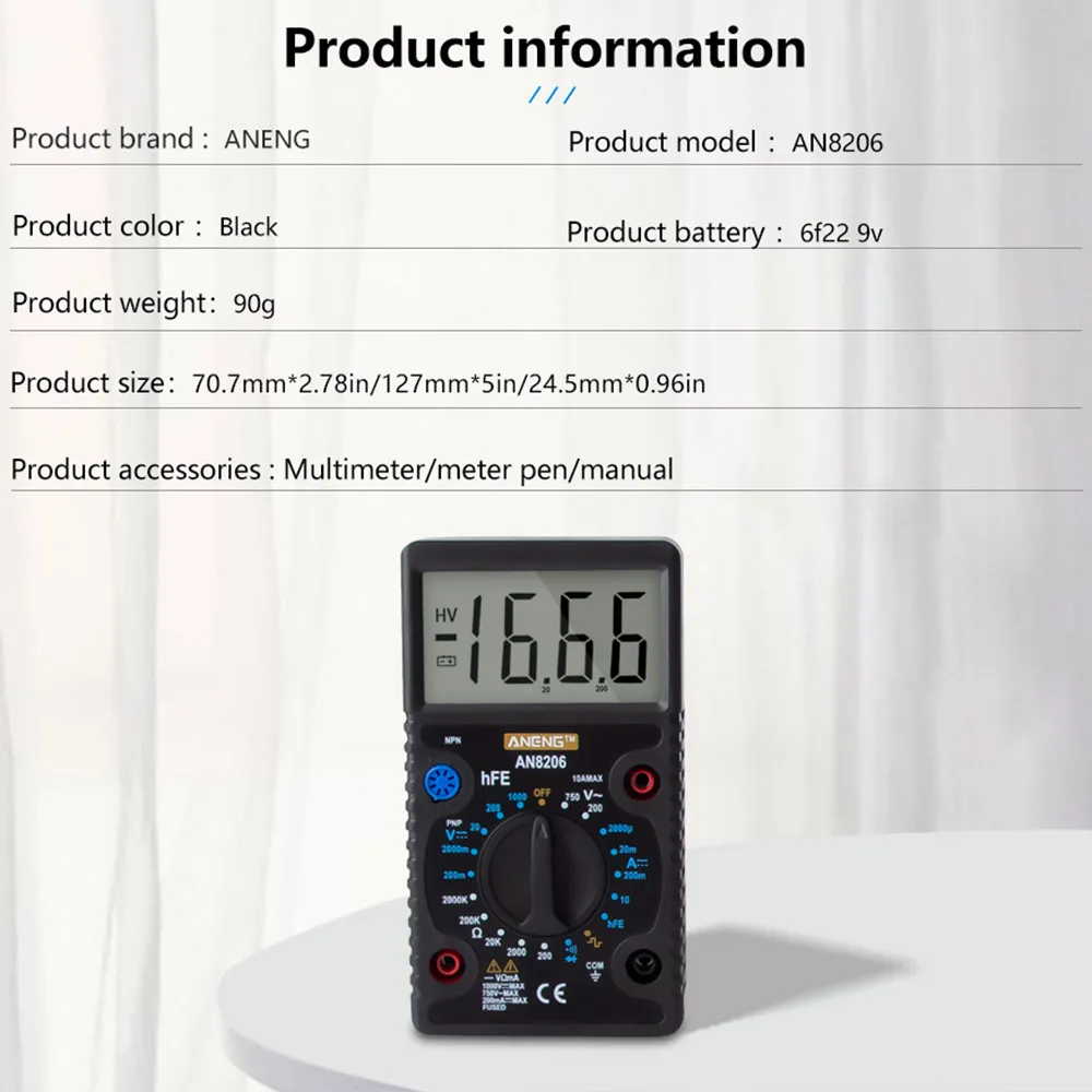 Цифровой мультиметр ANENG AN8206 (в комплект не входят батарейки)-1 шт.