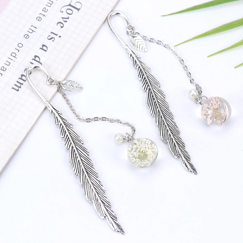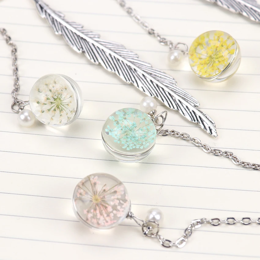 1 шт., милый кулон с высушенным цветком, металлические закладки, новинка, книга для чтения, креативный подарок для детей, канцелярские принадлежности