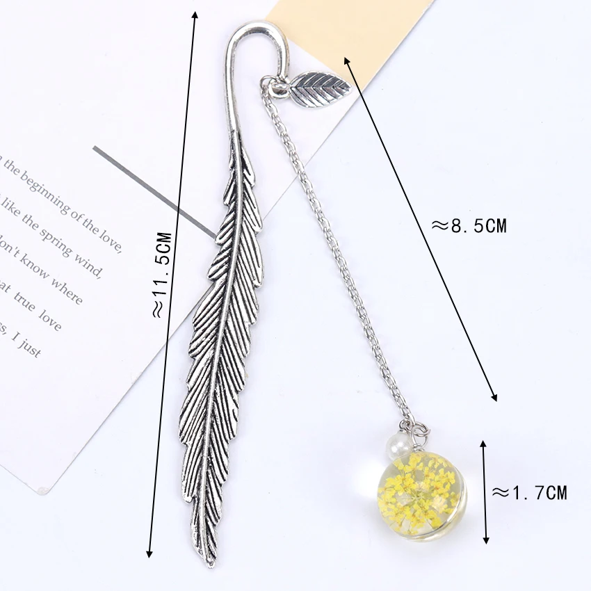 100% новый и высокое качество! Это отличный подарок для вашей любимой, семьи и друга Материал: металл Цвет: серебристый Размер пера: около 11,5 см Размер цепочки: около 8,5 см Диаметр подвески: около 1,7 см Стиль: белый, желтый, розовый, синий (отправлено наугад) Посылка включает в себя: 1 высушенная Закладка с цветами
