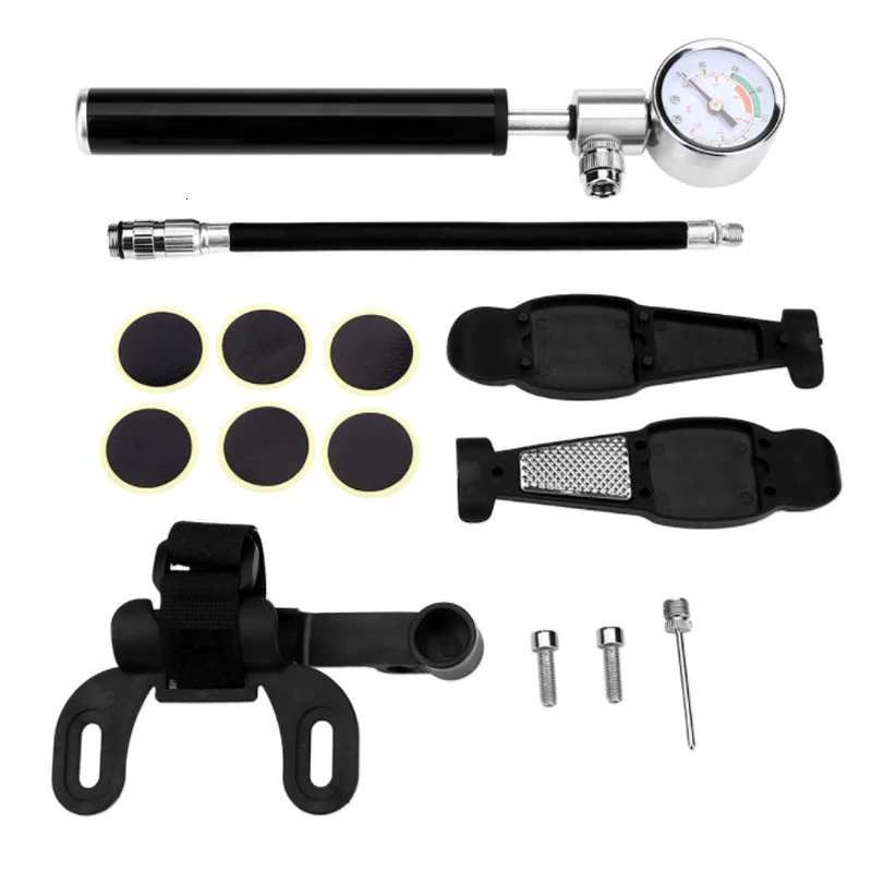 5.Комбинированные пакеты:Мини-насос, 2 шт лом, 6 шт бесклеевая коробка для ремонта шин, являются незаменимым приобретением для любого велосипедиста. Быстрые инструменты для ремонта проколов, могут избавить вас от проблем, если вы столкнулись с плоской шиной во время езды, E ssential инструмент для экстренной ситуации.