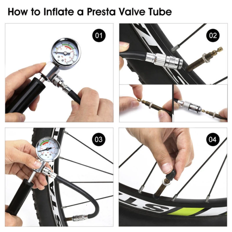 4.Функция:Этот насос оснащен клапанов Presta и Schrader, в соответствии с типом клапанов шин, головка клапана может легко переключаться между клапанов Presta и Schrader для удобства использования, подходит для большинства велосипедов, но также для всех видов шаров.