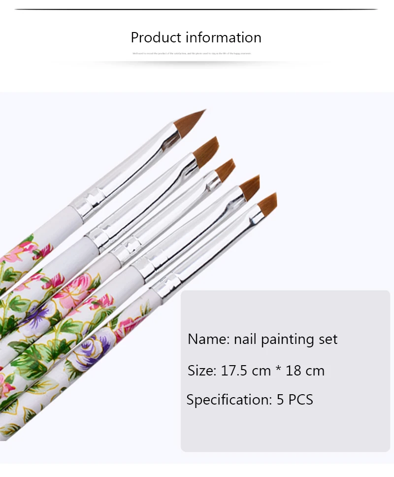 Особенности на 100% абсолютно новый и высокого качества. Отлично подходит как для профессионального специалиста по маникюру, так и для дизайна ногтей Цвет: как показано на рисунке материал кисти: нейлон Материал ручки: дерево средняя длина: 18 см Общий вес: 30 г посылка Размер: 5,5*20,5*0,5 см посылка в комплекте: 5 * ручка для дизайна ногтей