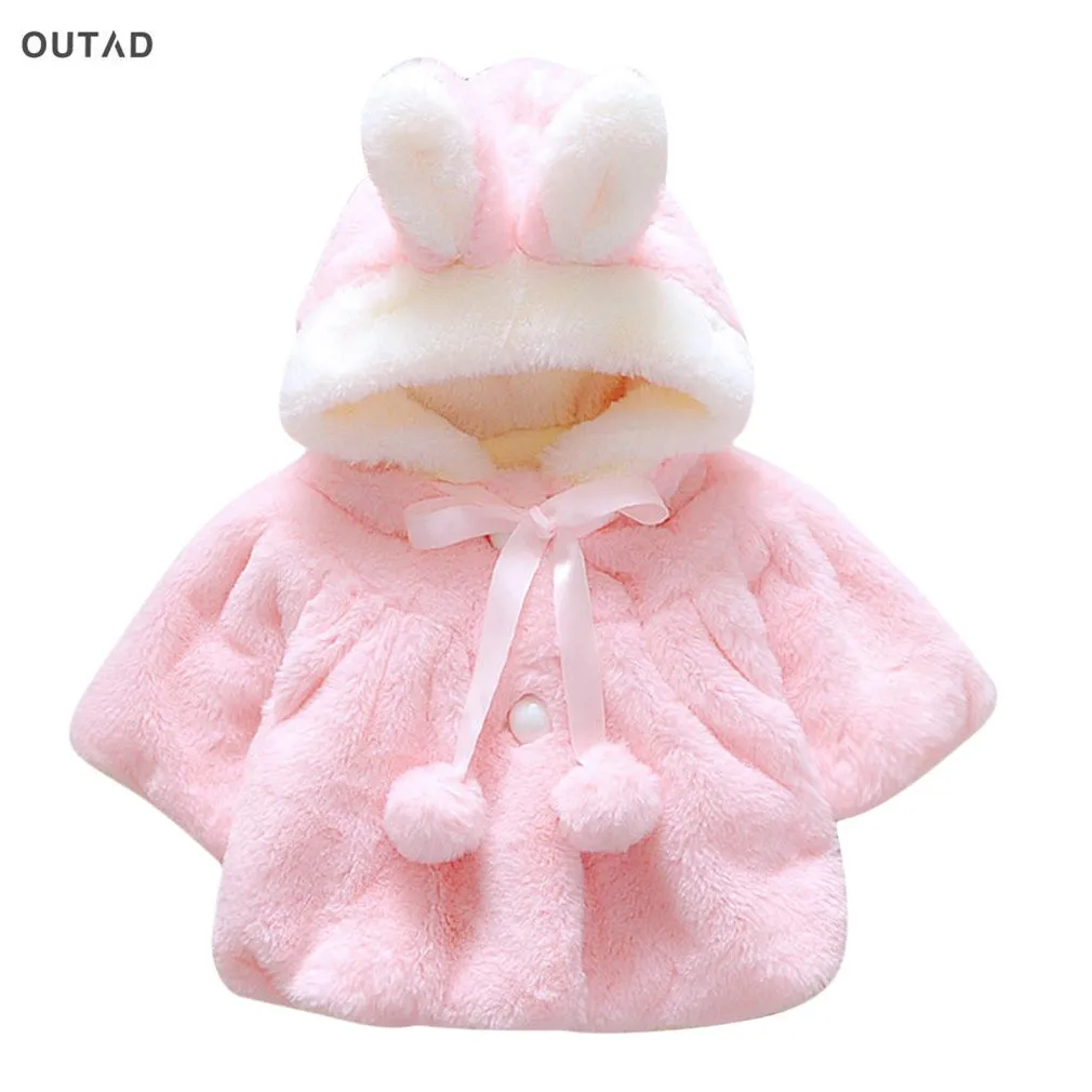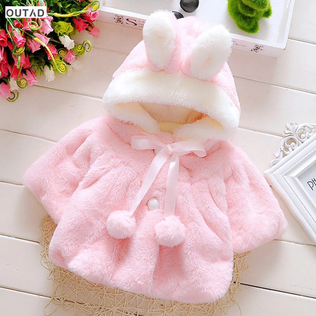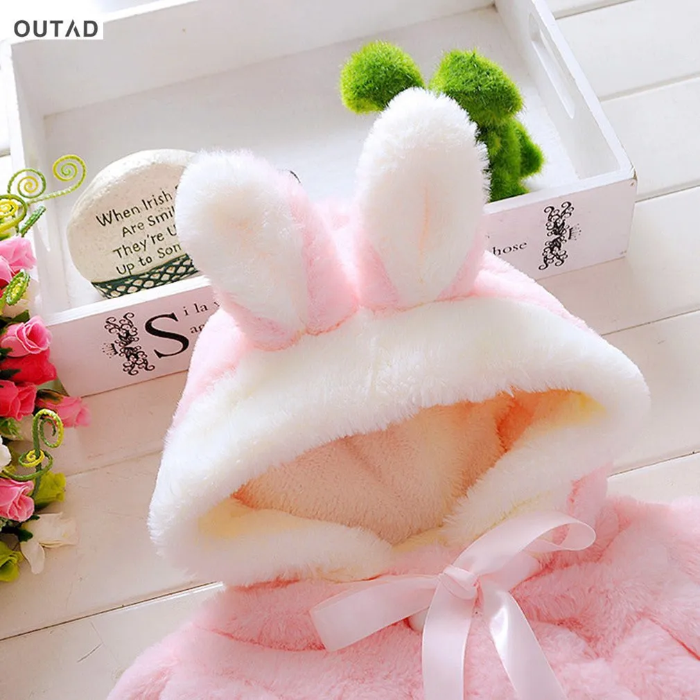 2017 Baby Girl Cotton Rabbit Coat Velour fabric Infant Garment Autumn Winter Korean Version Fur Thickened Warm Coat With Hat New