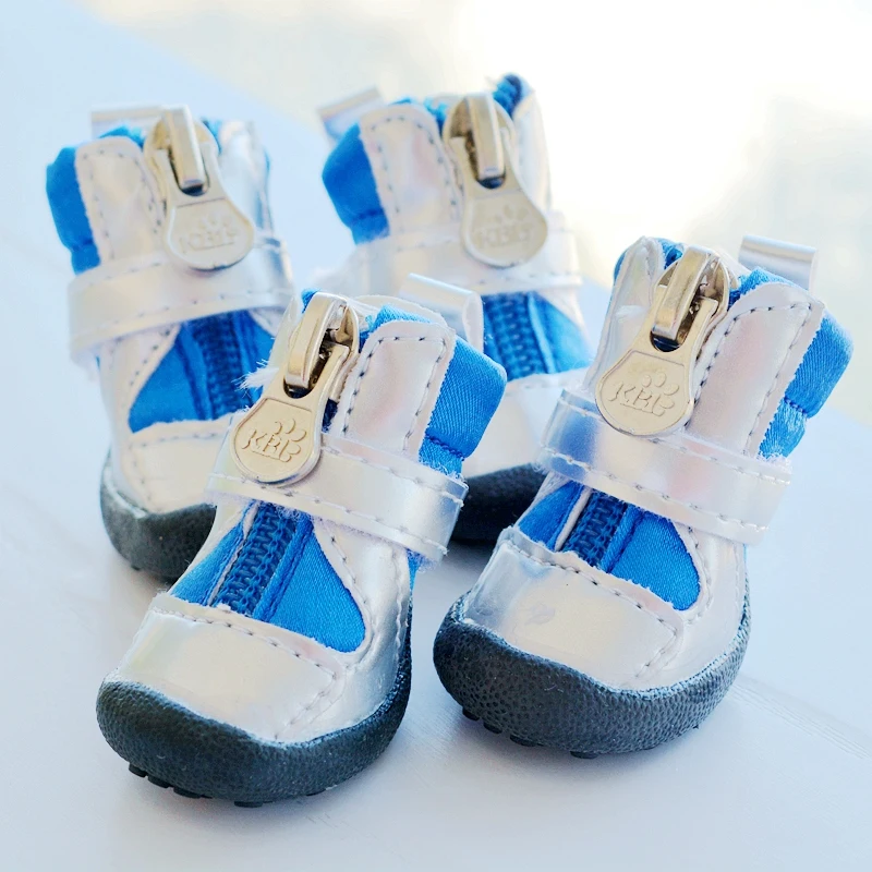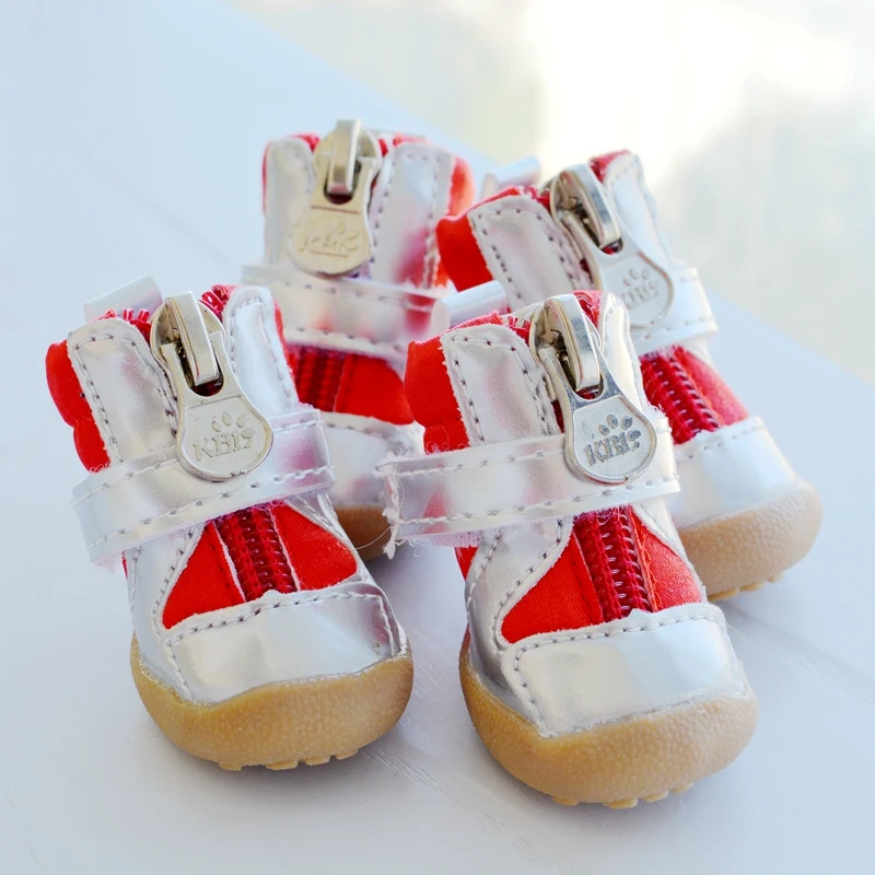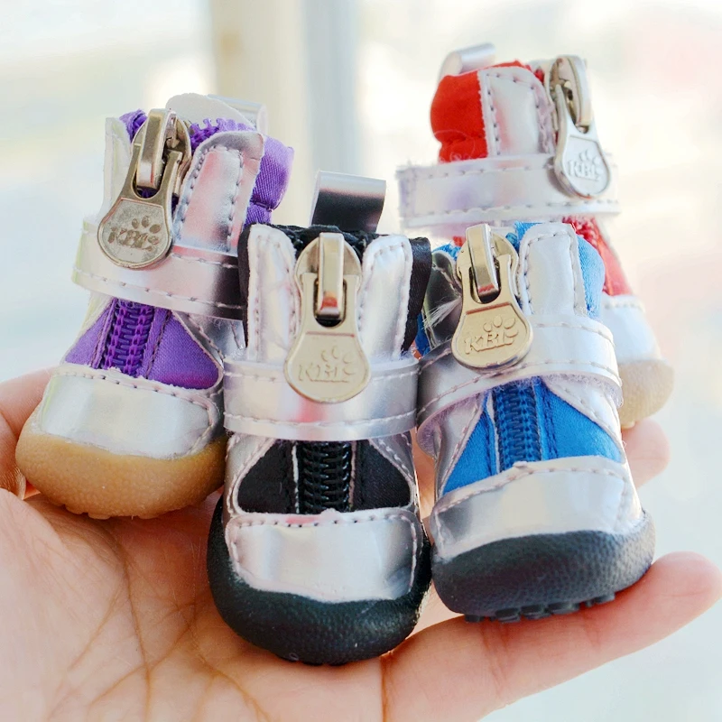Нескользящая обувь на молнии для питомцев Тедди бишон чихуахуа, щенков из искусственной кожи, бульдог, водонепроницаемая обувь на весну и осень, 4 шт./компл.