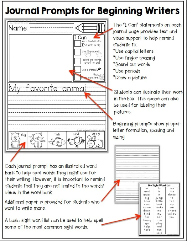 * Иллюстрированный банк слов, чтобы помочь в написании слов, которые они могут использовать в своем написании.