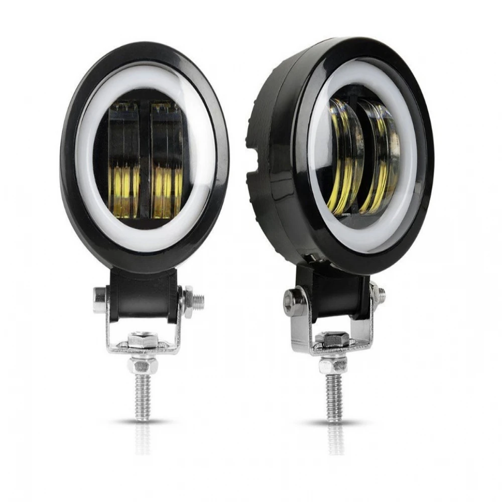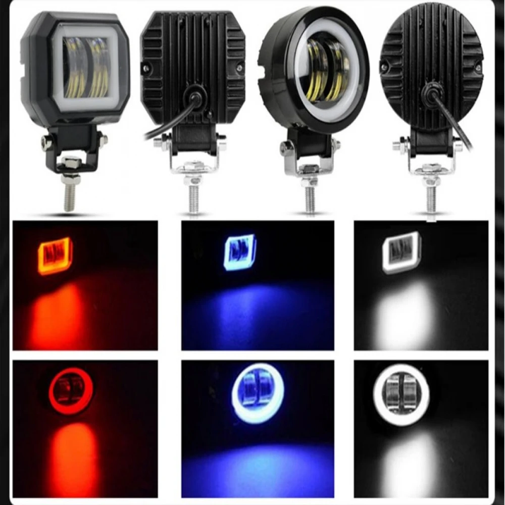2 шт. 20 Вт Точечный светильник, противотуманный светильник для внедорожных транспортных средств, круглый светодиодный светильник для стайлинга автомобиля, круглый светодиодный светильник с ангельскими глазками для внедорожников Jeep ATV