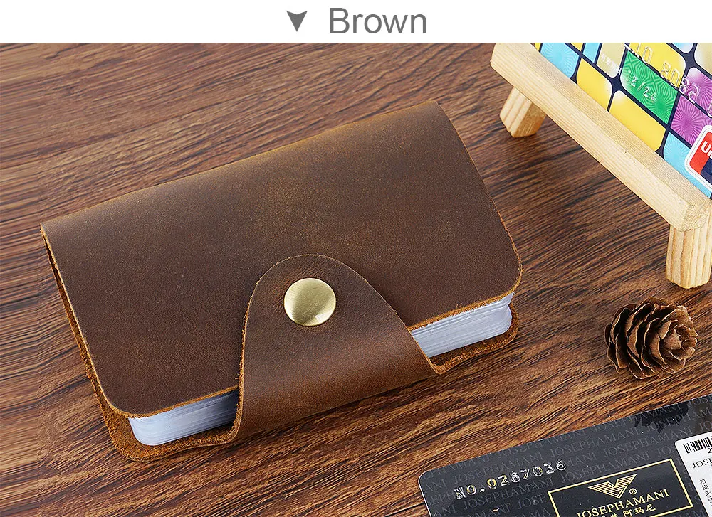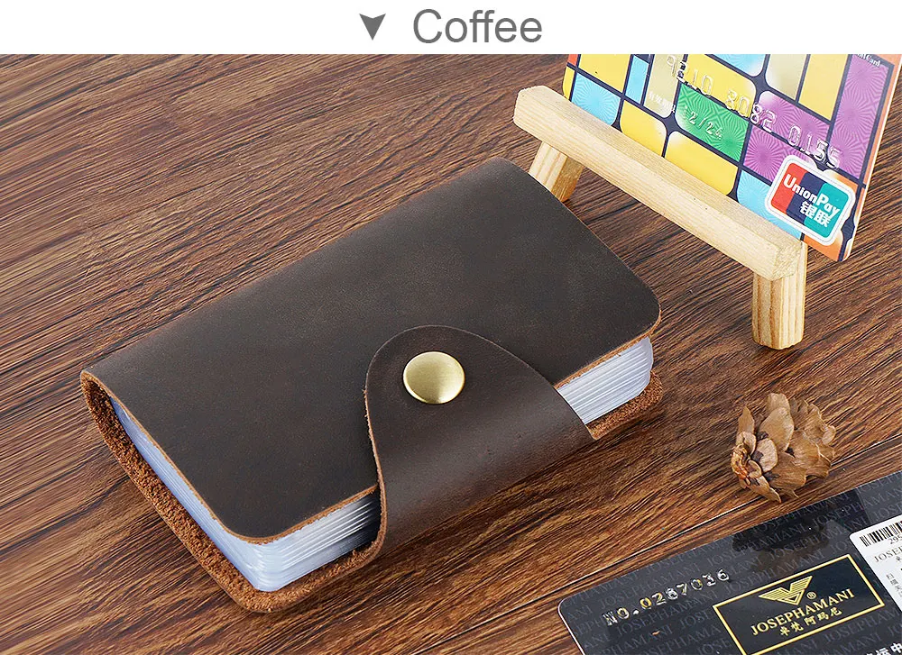 Бренд: Moterm Материал кожи: верхний слой из воловьей кожи Кожаный Стиль: кожа Crazy Horse Размеры: 7,8x10,8 см Вес: 0,8 кг Емкость: 20 карт Цвет: черный/кофейный/коричневый/зеленый/синий/красный Примечание: При разнице в способе измерения, пожалуйста, учитывайте Размер 1-2 мм.