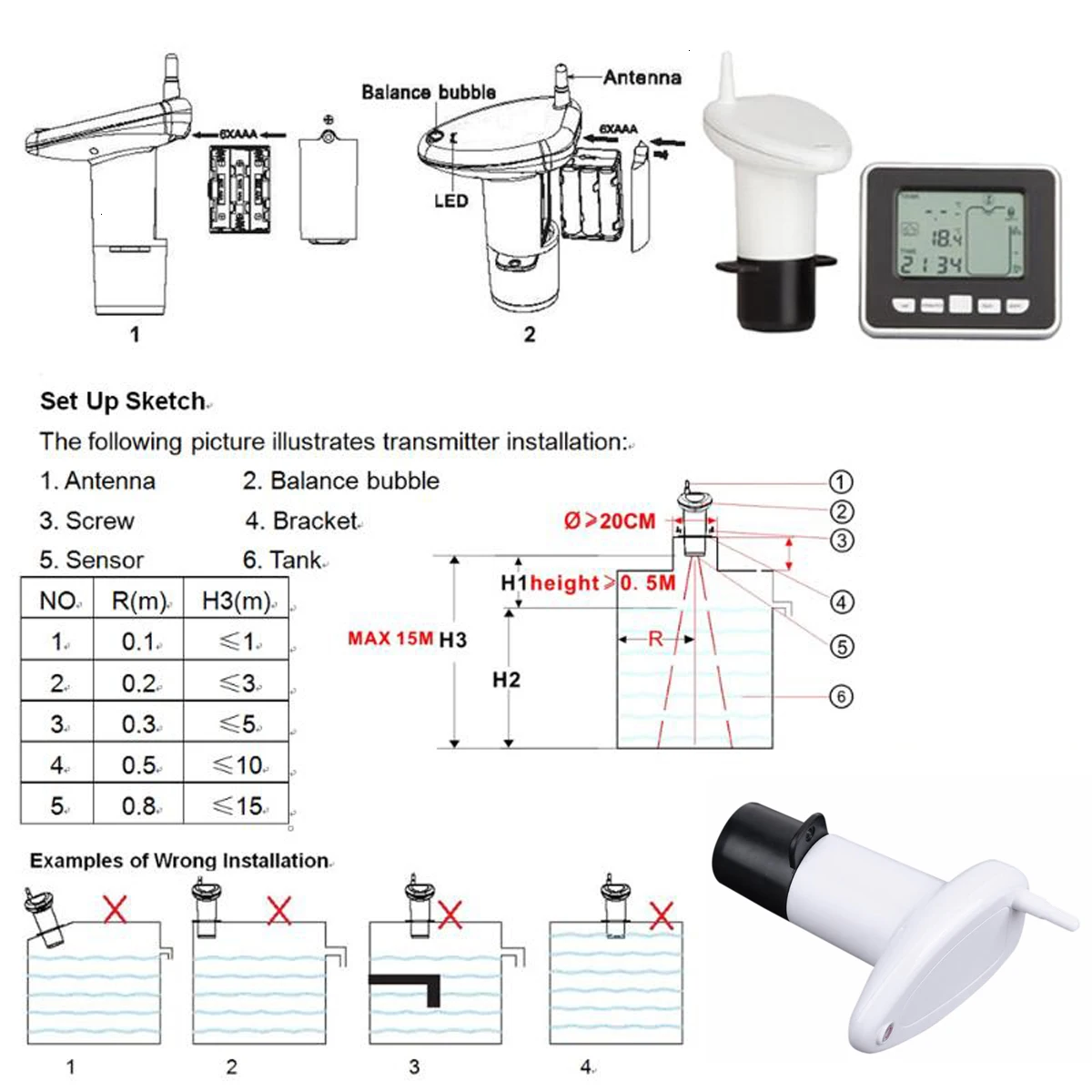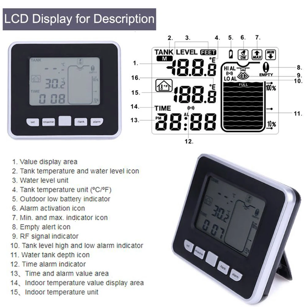 Описание:Следите за резервуаром для воды на открытом воздухе, не выходя из вашей собственной гостиной, до 100 м. Установленный в верхней части резервуара для воды, блок передатчика измеряет уровень воды с помощью ультразвукового датчика и температуры с помощью термо-датчика. Вы можете повесить приемник на стену или вытянуть подставку и разместить его на кухонной скамейке, столе или столе. Ознакомьтесь с температурой, температурой резервуара и уровнем воды в вашей комнате (представлен диаграммой 10 элементов). Вы можете хранить записи мин/Макс и устанавливать сигналы тревоги для конкретных уровней воды (высокий/Низкий) или когда пустой. Особенности: Этот счетчик мониторов бака жидкости глубина уровня и отображает на 10-элемент ЖК-дисплей столбчатого индикатора. Он может держать мин/Макс записи уровня жидкости бака. Поддерживает уровень жидкости бака Высокий/Низкий сигнал тревоги и бак жидкость пустой сигнал тревоги. Отображает температуру в помещении (° или °) и температуру бака (° или °) одновременно. Приемник можно поставить на стол или повесить на стену. Параметры: Диапазон температуры в помещении: 0 ~ 60 ° Наружный диапазон температур:-40 ~ 60 ° Точность температуры: ± 1ос Замер уровня воды: 0 ~ 15 м Разрешение: 0,01 м Точность: +/-0,03 м Частота передачи: 433 МГц Дальность передачи: 100 метров (300 футов) на открытой местности Интервал передачи: 30 с, когда уровень меняется или 3 минуты, когда уровень не меняется Батарея приемника: 2х щелочные батарейки AA 1,5 в LR3 (не входят в комплект) Батарея передатчика: 6X AAA 1,5 В LR6 щелочные или литиевые батареи (не входят в комплект) Срок службы батареи: минимум 12 месяцев для приемника Минимум 12 месяцев для передатчика Размер приемника: 108*94*27 мм Размер передатчика: 97*68*152 мм Размер ЖК-дисплея: 66*45 мм (3,3 дюйма) Подходящий тип жидкости: вся некоррозионная жидкость Посылка включает в себя: 1 х Датчик уровня воды передатчик 1 x внутренний приемник Винты-2 шт. (Батарейки в комплект не входят)