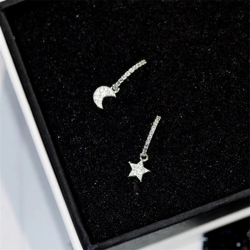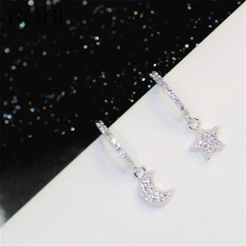 Женские асимметричные серьги ROXI, серьги-гвоздики из стерлингового серебра 925 пробы с фианитом в форме звезды и Луны, корейский стиль, рождественские украшения