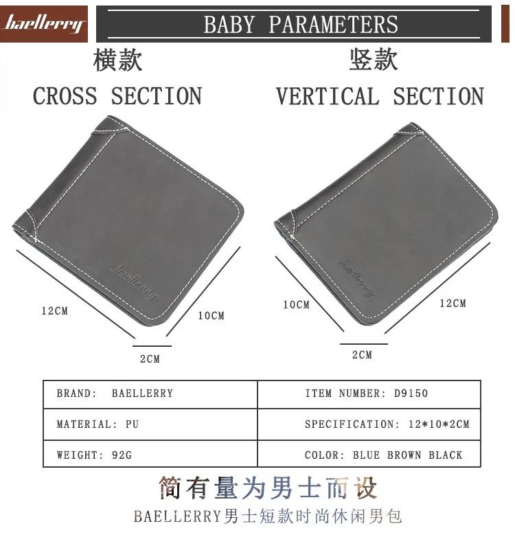 Пол: мужской короткий кошелек Стиль: деловой Материал: из искусственной кожи Размеры: 12.cm( L)* 1,5 см (Ш) * 9,8 см (H) / 4,7 (Д) * 2,2 (Ш) * 3,9 (В)