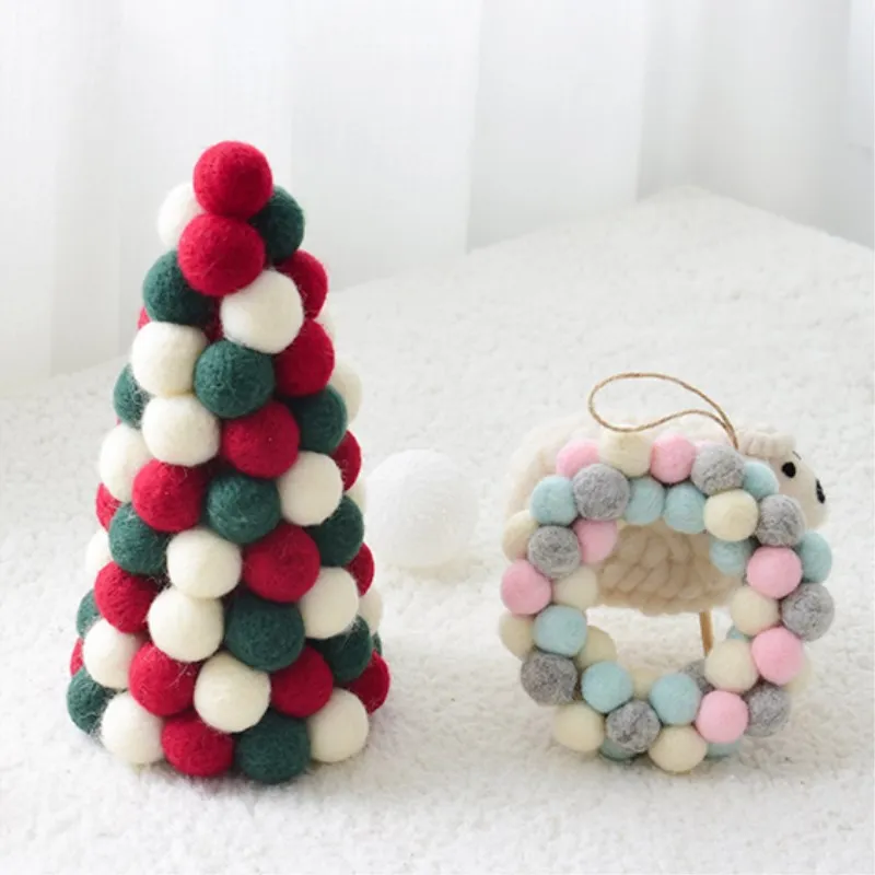 INS шерстяной войлочный венок орнамент DIY Рождественская елка украшение шары веревка подвесная гирлянда домашний декор товары для фестиваля25
