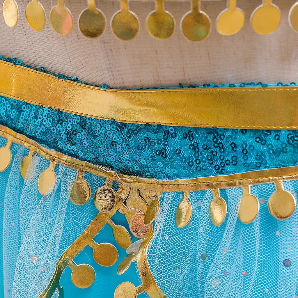 Детский костюм принцессы для костюмированной вечеринки с блестками; Топ с фатиновой юбкой и штаны с кисточками; Вечерние наряды