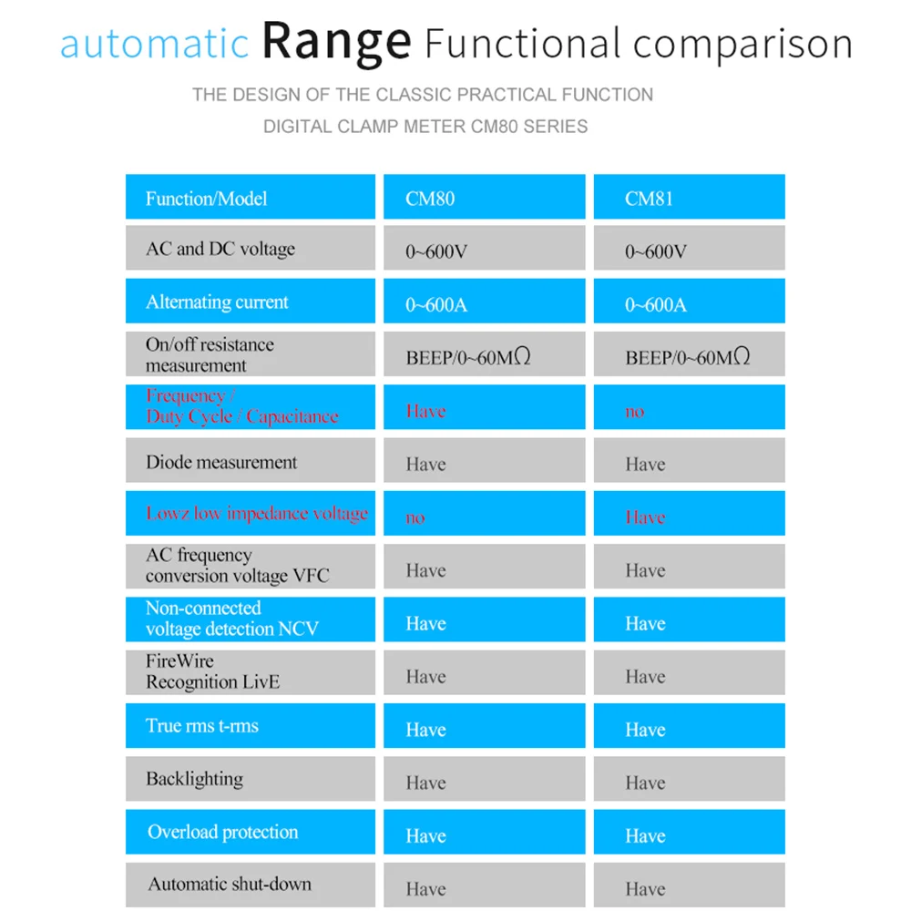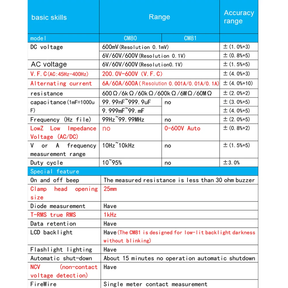 1. Этот CM81 является портативным цифровым зажимом, высокой надежностью, высокой точностью и портативностью, идеальным инструментом для лаборатории, фабрики, дома и других отраслей.