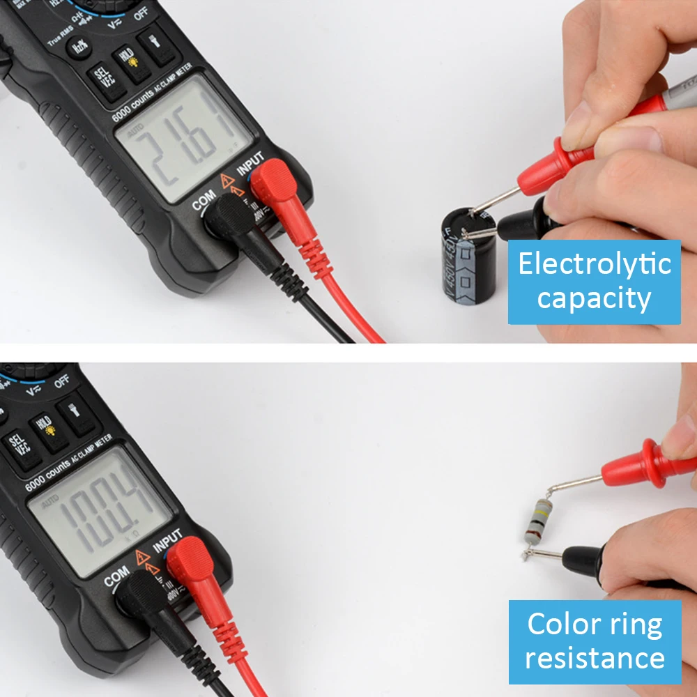 3. Больше преимуществ, таких как подсветка, фонарик, true RMS, Удержание данных, Автоматическое отключение питания, индикация низкого заряда батареи, индикация диапазона.