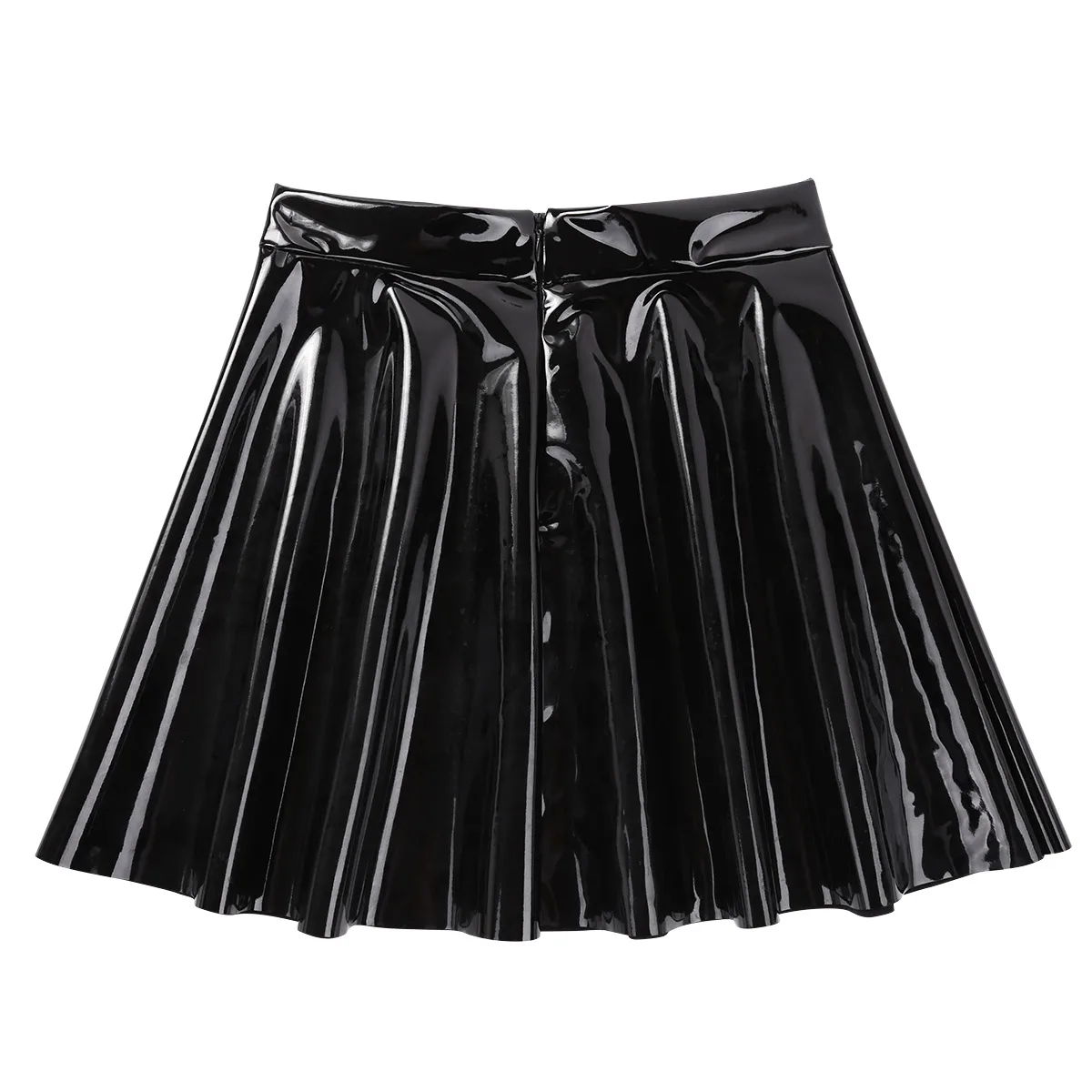 Women’s casual fashion flared pleated A-line circle mini skater skirt, concealed back zipper closure.