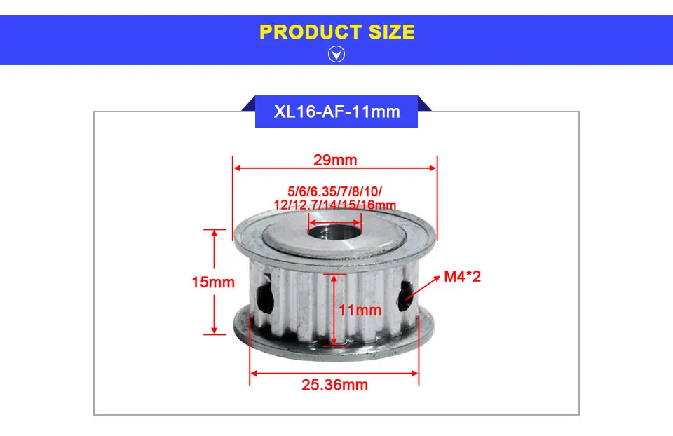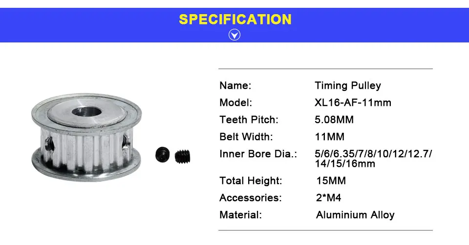 Зубчатый синхронный шкив LUPULLEY 16 зубьев XL шаг зубьев 5,08 мм Ширина ремня 11 мм Синхронизация алюминиевых колес