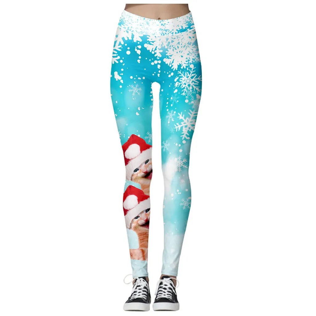 Women Fashion High Waist Yoga Christmas Print Running Sports Pants Trouser