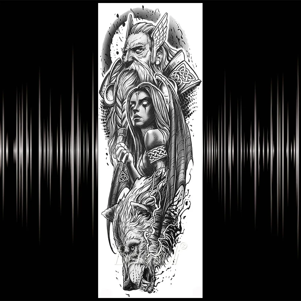 BAOFULI 3D Временные татуировки на полную руку "война богов", реалистичные татуировки волка, рыцаря, воина для мужчин, женский боди-арт, одноразовые татуировки