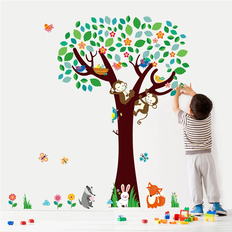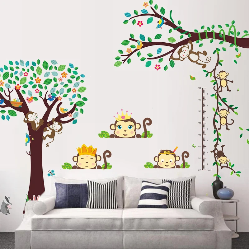 3D Джунгли Обезьяна Дерево Декор стены бумага лесные наклейки Дети украшение для детской комнаты спальня Hogar современный детский подарок плакат