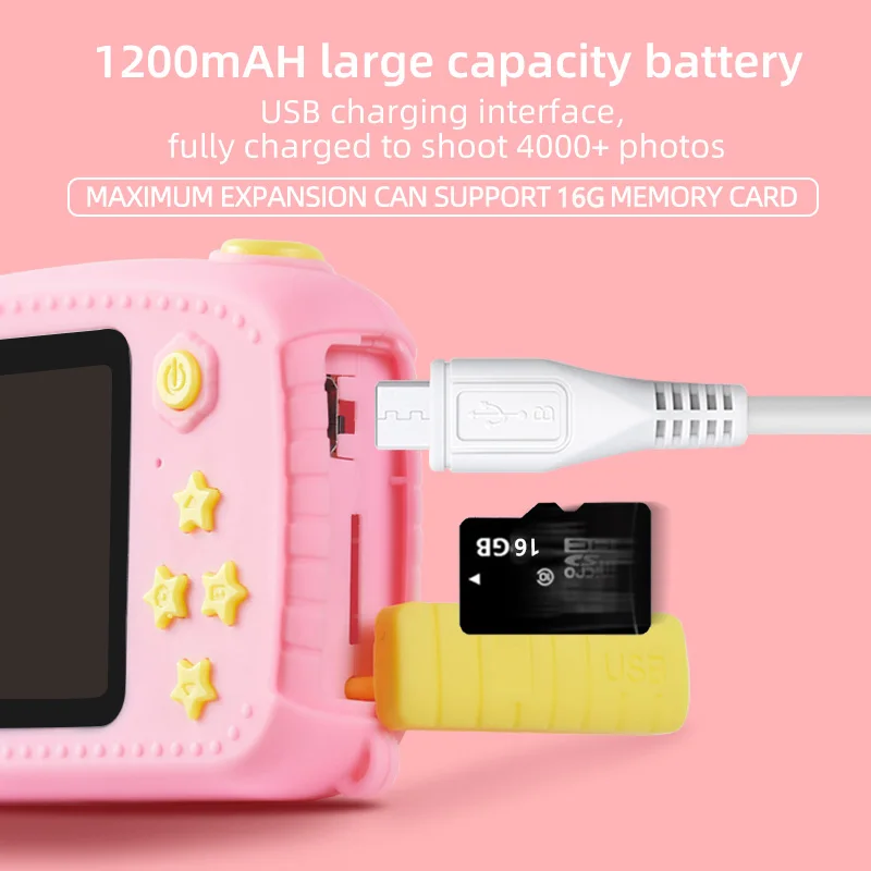 Примечание: 2,0 "ips экран, защищает глаза детей от вреда, время зарядки составляет 2 часа, и он может делать 4000 фотографий и фотосъемки непрерывно камера поддерживает до 32 Гб sd-карт