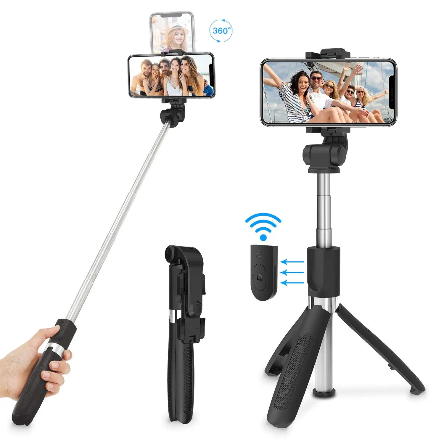 Выдвижной монопод для селфи: с помощью регулируемой головки вы можете установить свой смартфон на 270 градусов, чтобы получить наилучший угол для съемки Селфи, групповых фотографий и снимков с воздуха над толпой