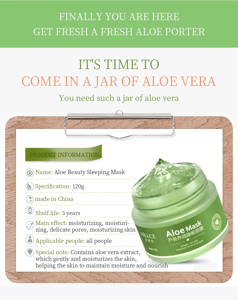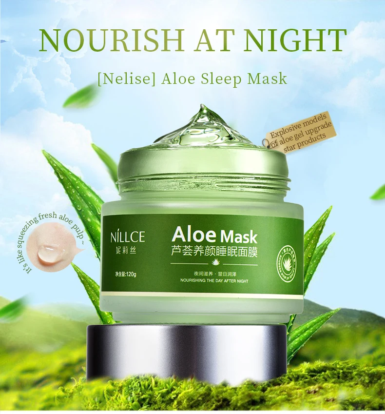 NILLCE маска для лица с алоэ, контроль жирности, увлажняющая для сна маска для восстановления кожи от солнечных ожогов 120 г