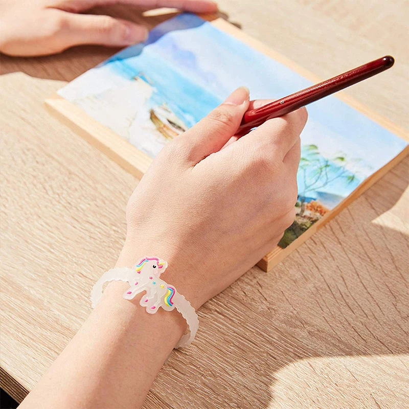 Полезная:Эти Мультяшные браслеты с изображением единорога являются гибкими, водонепроницаемыми и регулируемыми, чтобы соответствовать различным размерам запястья с 4 безопасными отверстиями на ремешке; Это восхитительно весело и декоративно.