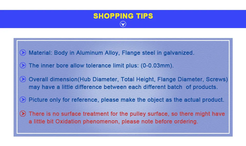 Название продукта: зубчатый шкив Модель: XL17-AF-11mm Ширина ремня: 11 мм Диаметр отверстия: 5/6/6.35/7/8/10/12/12.7/14/15/16 мм Шаг зубцов: 5,08 мм Тип зубцов: трапеция Общая высота: 15 мм Аксессуары: 2 * M4 Материал: алюминиевый сплав с оцинкованным железом Посылка: 1 шт. XL17-AF-11mm зубчатый шкив + 2 верхних провода M4