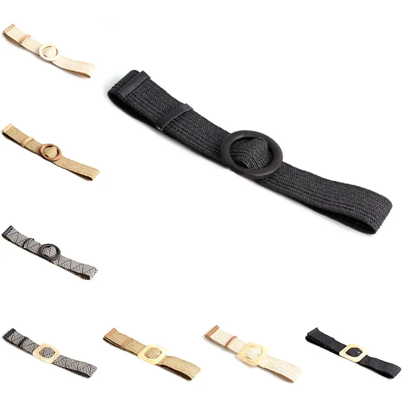 Богемный полипропиленовый широкий плетеный ремень, круглый деревянный квадратный пластиковый пояс с пряжкой