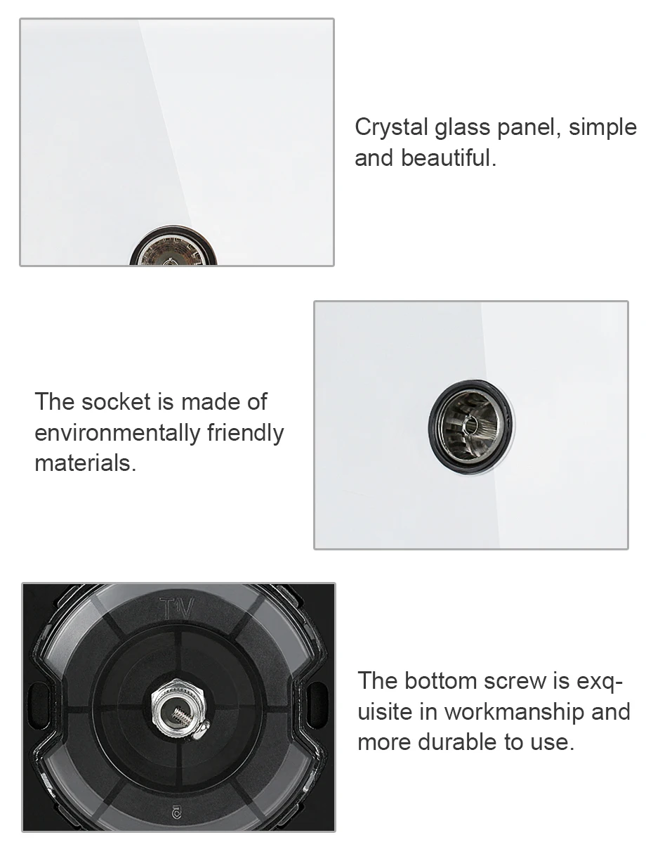 UNKAS, белый цвет, аксессуары для проводки, розетка, роскошная хрустальная стеклянная панель, ТВ, телевизионный разъем, настенная розетка, закаленное стекло