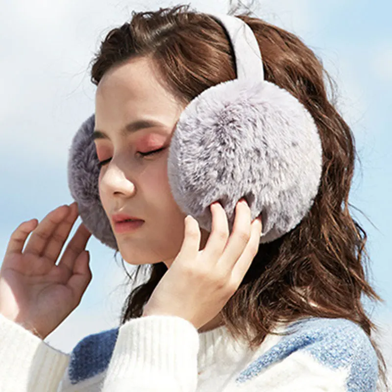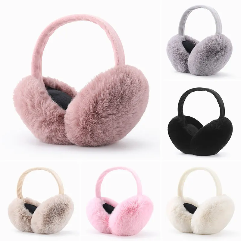 Однотонные цветные наушники из искусственного меха, зимние теплые складные пушистые плюшевые наушники