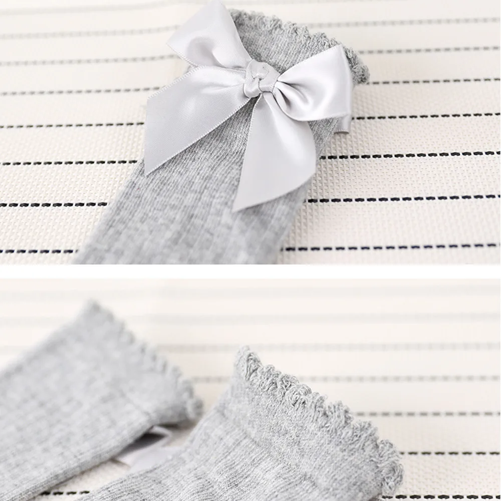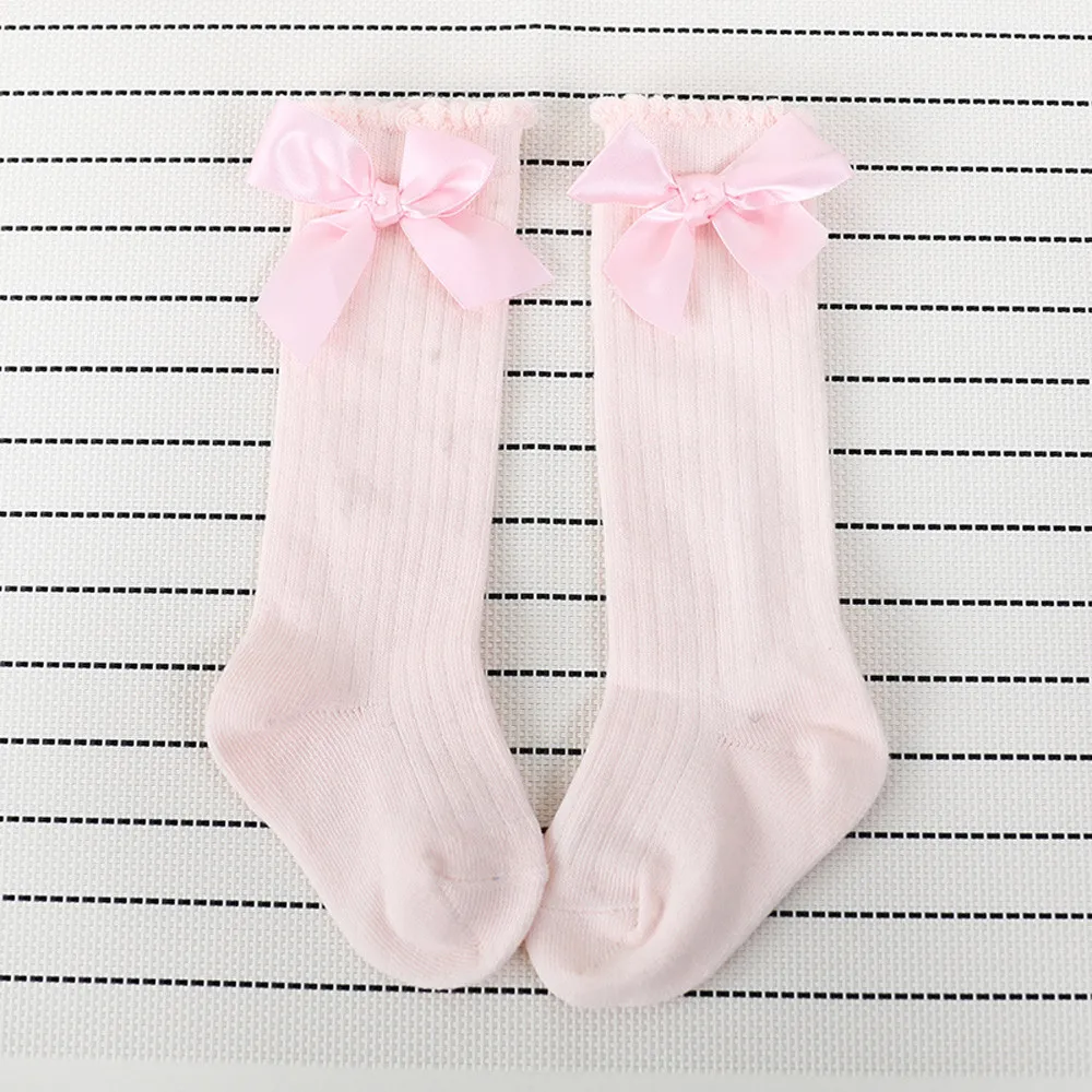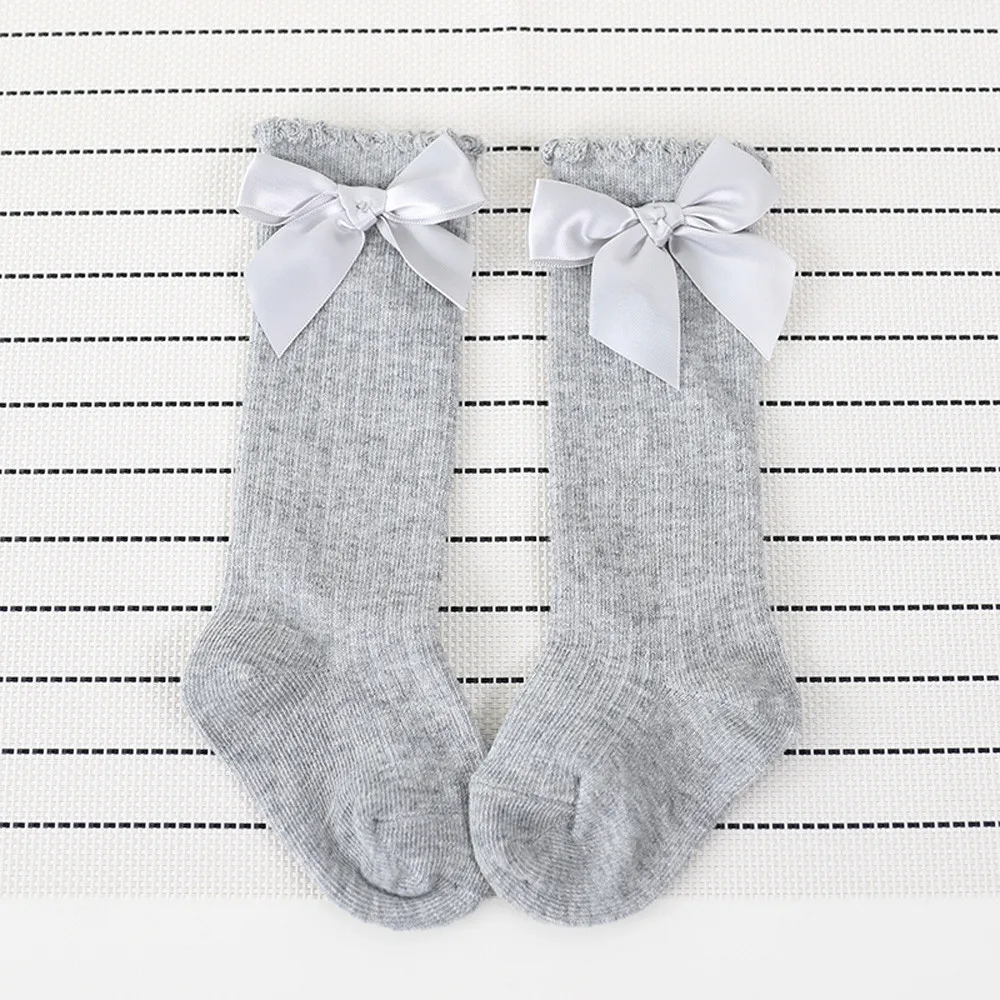 Новые детские мягкие хлопковые кружевные детские носки до колена с большим бантом для маленьких девочек