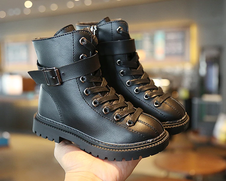 Ботинки для девочек; Новинка 2020 года; Сезон осень-зима; Ботинки для мальчиков; Детская обувь; Детские теплые плюшевые ботильоны из искусственной кожи; Ботинки для девочек; Обувь для мальчиков