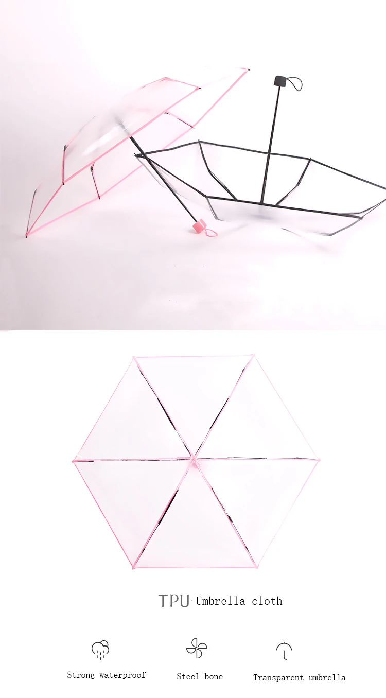 Мини прозрачный зонтик, анти-УФ зонтик, женский водонепроницаемый солнцезащитный удобный дорожный зонт для девочек