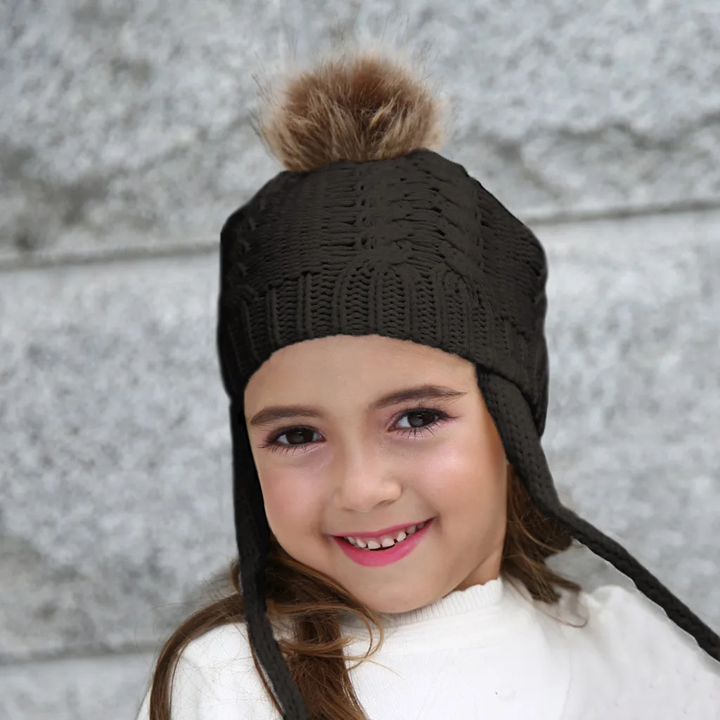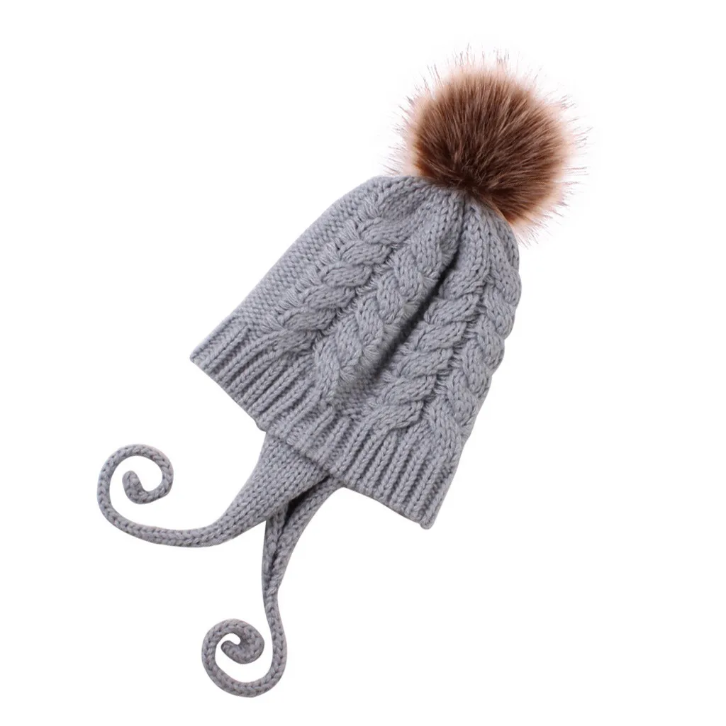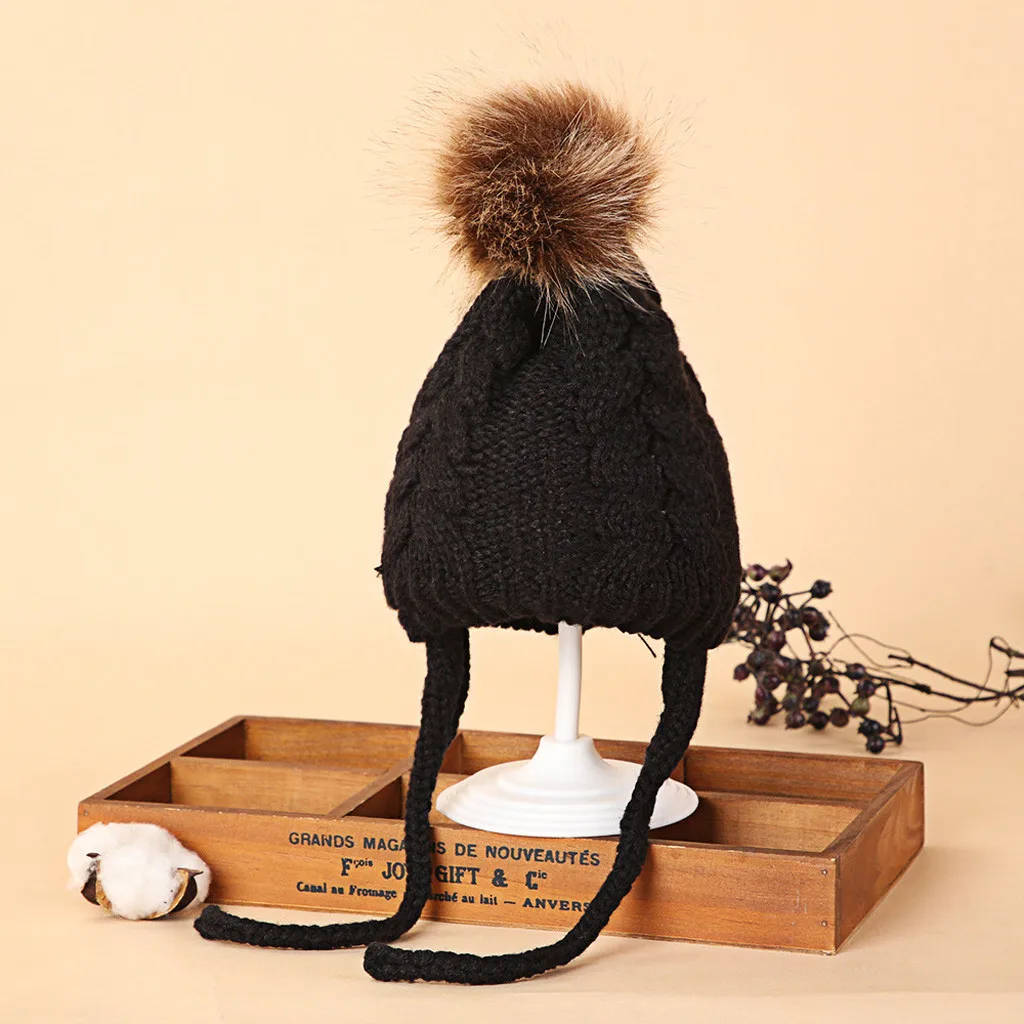 Теплая вязаная шапка-ушанка для маленьких мальчиков и девочек