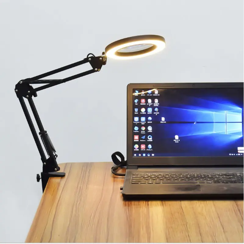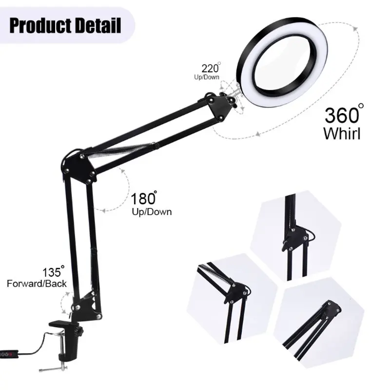 Это увеличительное стекло-33 см + 33 см выдвижной длинные руки цветовая температура светодиодный светильник может быть отрегулировано в 3 шага и яркости может быть отрегулировано в 11 шагов!