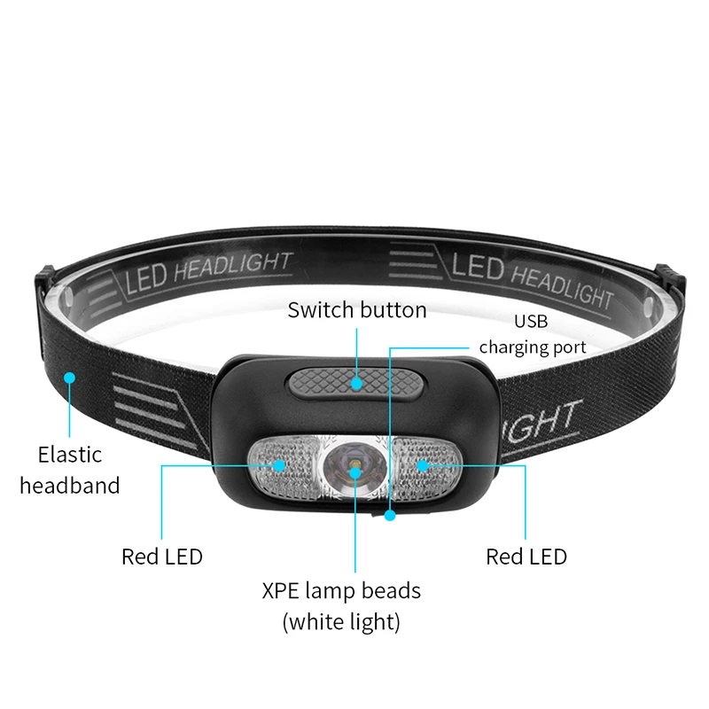 Параметры: Материал: АБС-пластик Цвет излучения: белый/красный Предупреждение о низком заряде батареи: Да Светильник можно регулировать под углом: 0-60 градусов Батарея в комплекте: Да Требуемая батарейка типа: Литиевый ПЕРЕЗАРЯЖАЕМЫЙ аккумулятор встроенный Метод зарядки: USB зарядка Режимы работы: высокий-средний-низкий, красный SOS-красный светильник Применение: Ежедневное освещение; Спорт на открытом воздухе, туризм, бег, альпинизм, кемпинг, рыбалка, езда.