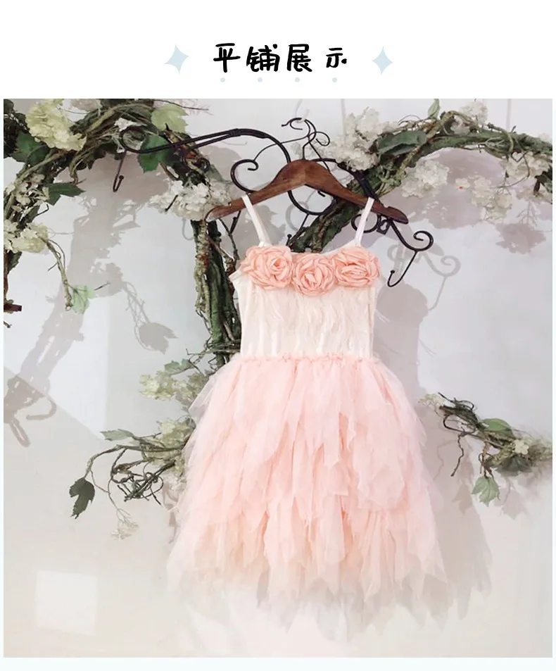 Розовые платья-пачки на бретельках Детские вечерние платья для маленьких девочек с цветочным рисунком и перьями, с блестками, детские платья, одежда для детей возрастом от 2 до 8 лет, Vestido