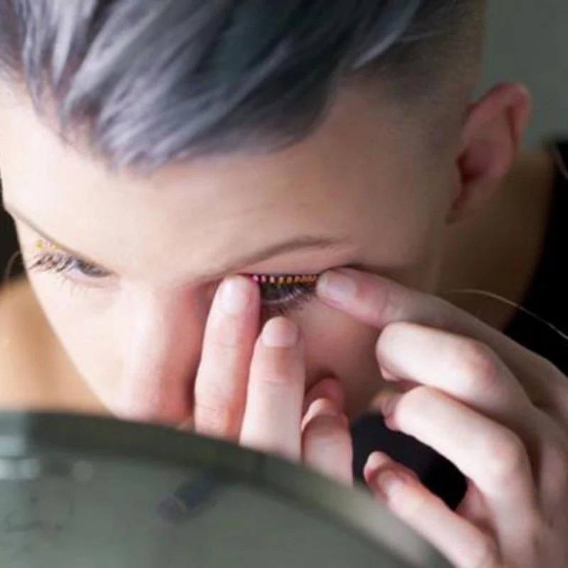 Просто используйте клей для ресниц и Наклейте его на свое век. Уникальный зажим можно прикрепить за голову или одежду.