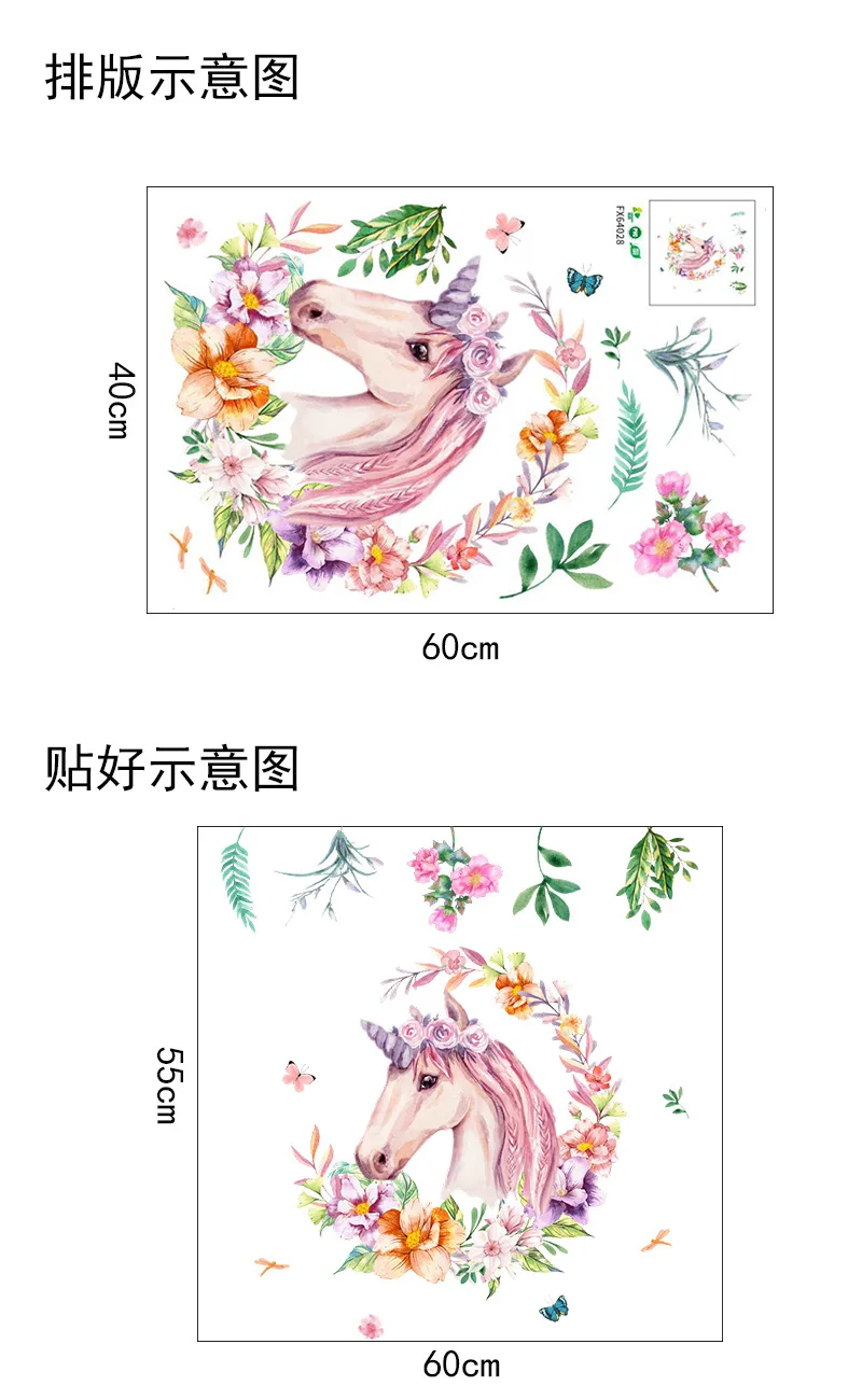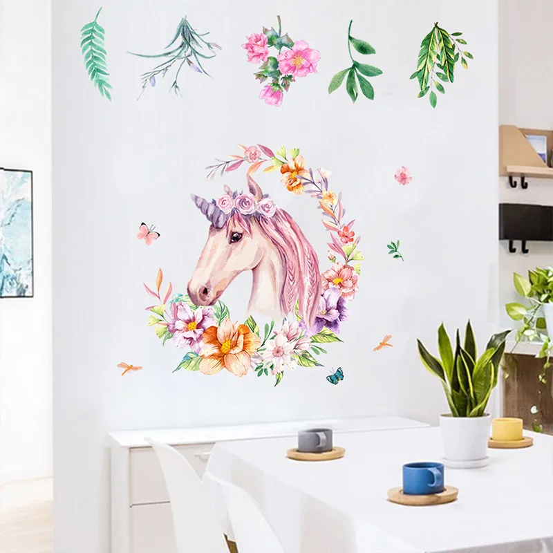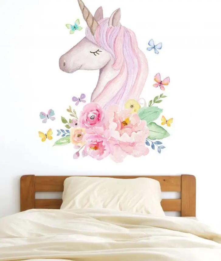 Новый скандинавский креативный мультяшный Розовый Единорог, индивидуальный декор, настенные бумажные наклейки для девочек, украшение для комнаты, Постер для спальни