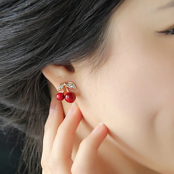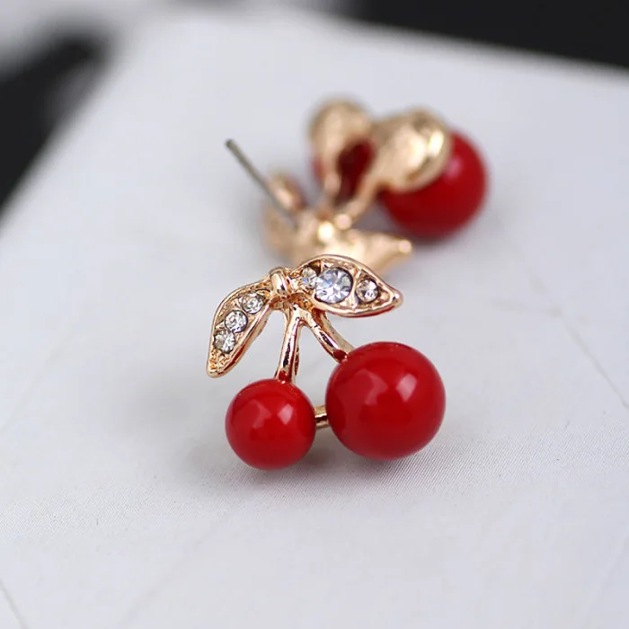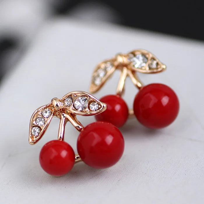Женские милые красные серьги-Вишенки с кристаллами сер88