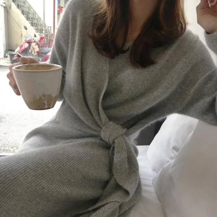 Кашемировое платье-свитер с поясом, женское модное трикотажное платье с v-образным вырезом и длинным рукавом JS26