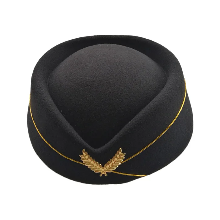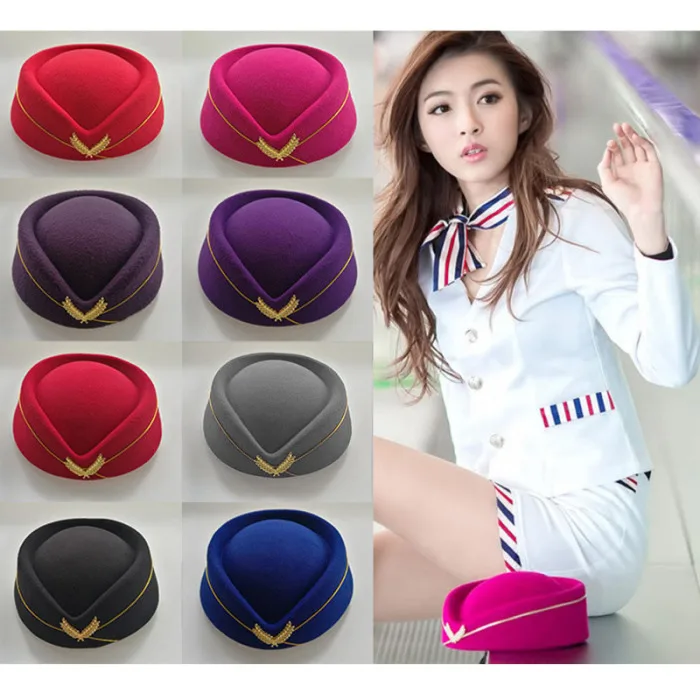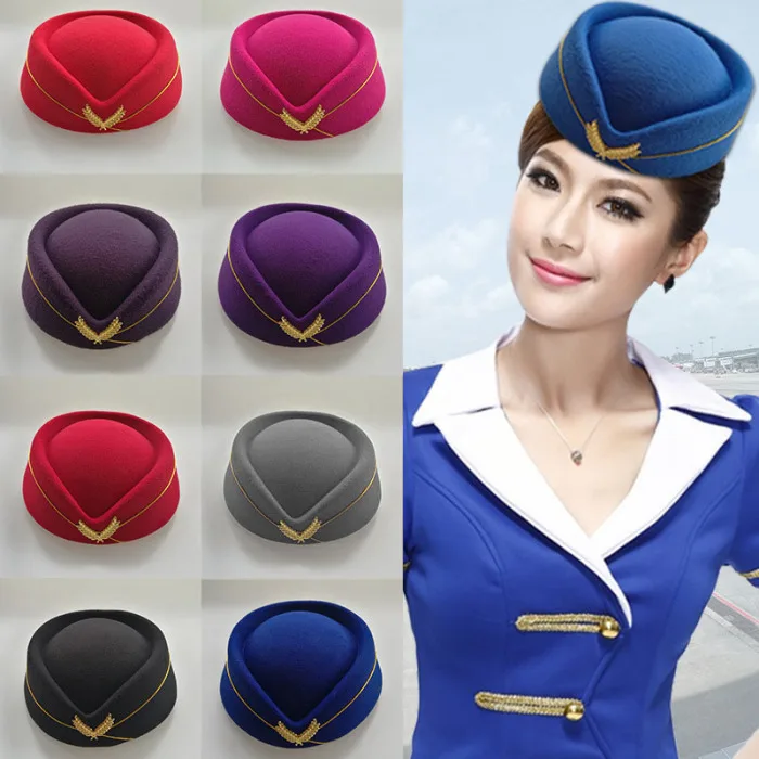 Осень Зима авиакомпания шапочка стюардессы Имитация шерстяная Униформа самолет шапочка стюардессы Косплей сценическое исполнение Женская кепка SER88
