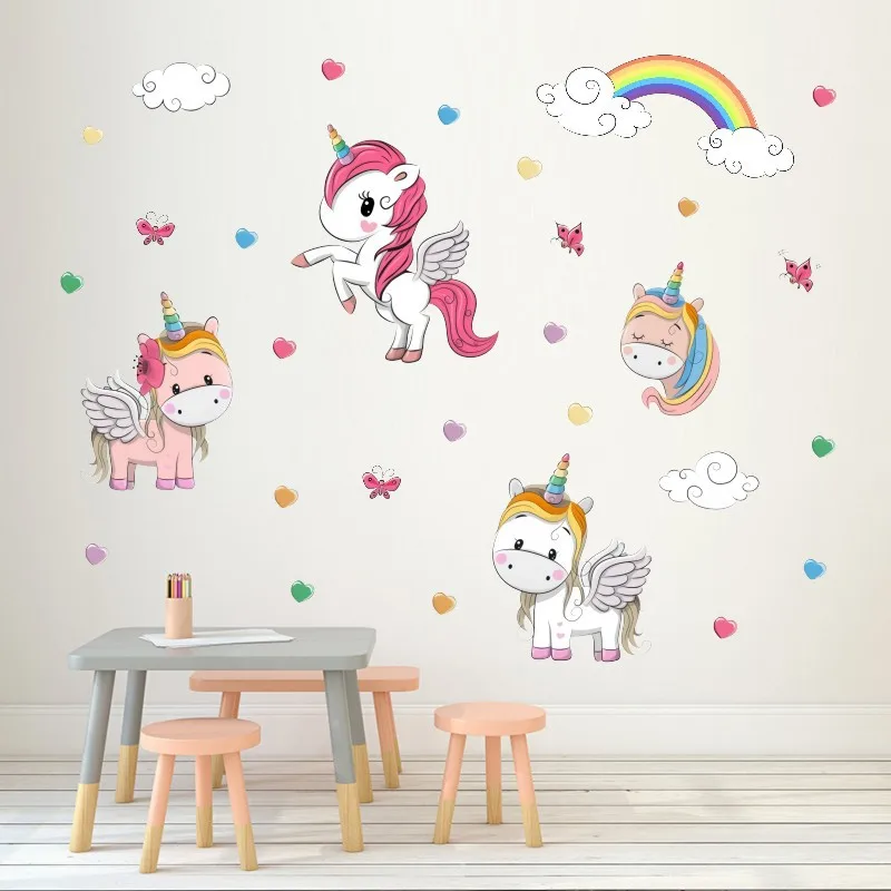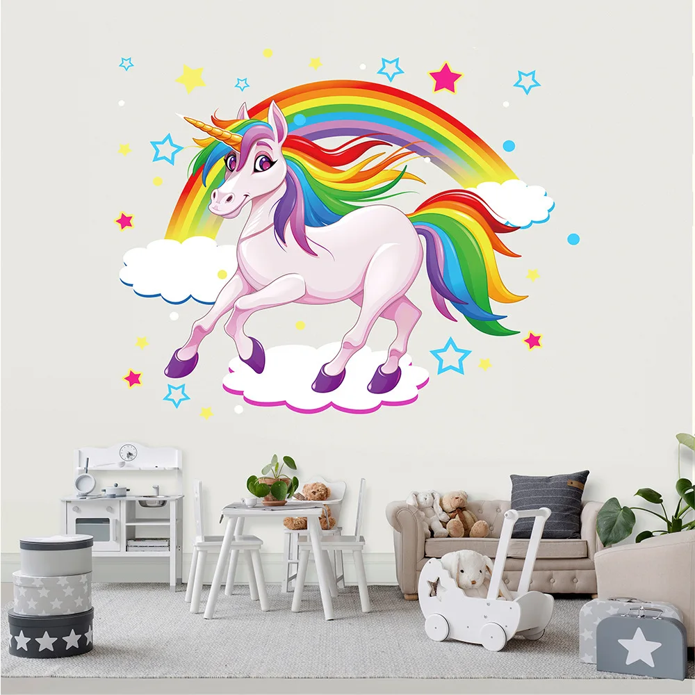 Декор в виде единорога, настенные бумажные наклейки для детской комнаты, гостиной, спальни, самоклеющиеся обои, Hogar, современный постер, дом