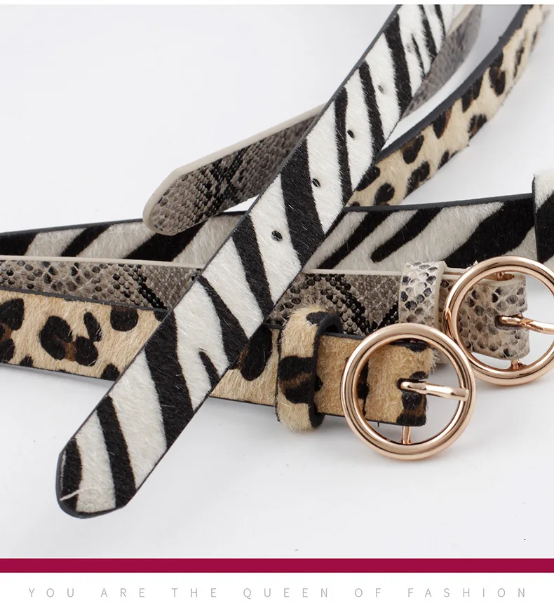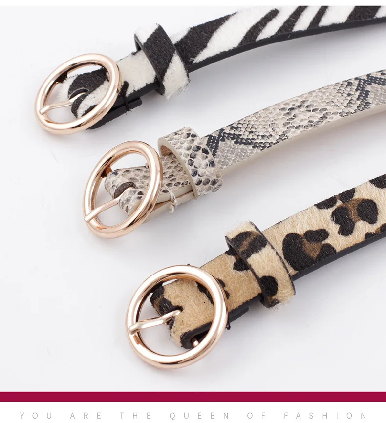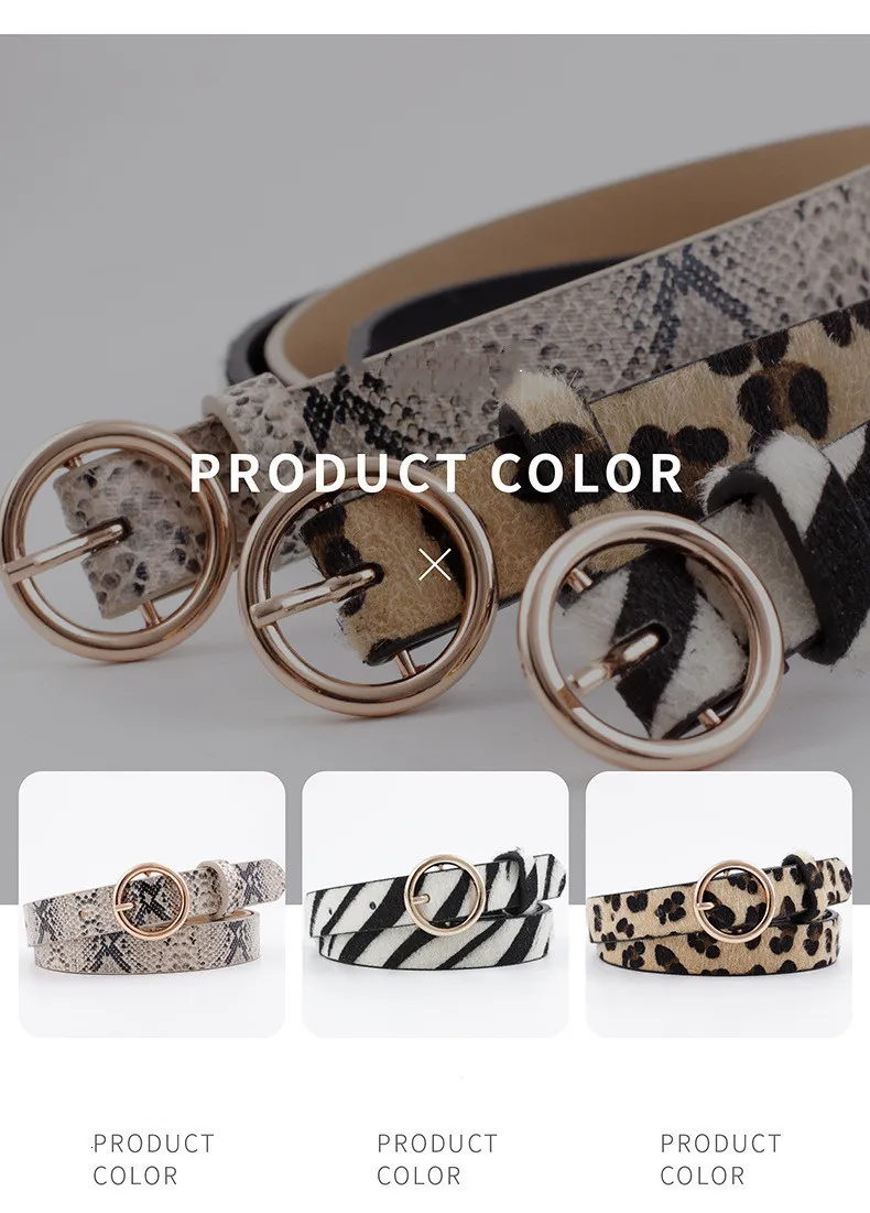 Женский ремень с леопардовым принтом, пояс из искусственной кожи с золотым кольцом и пряжкой, новинка 2019