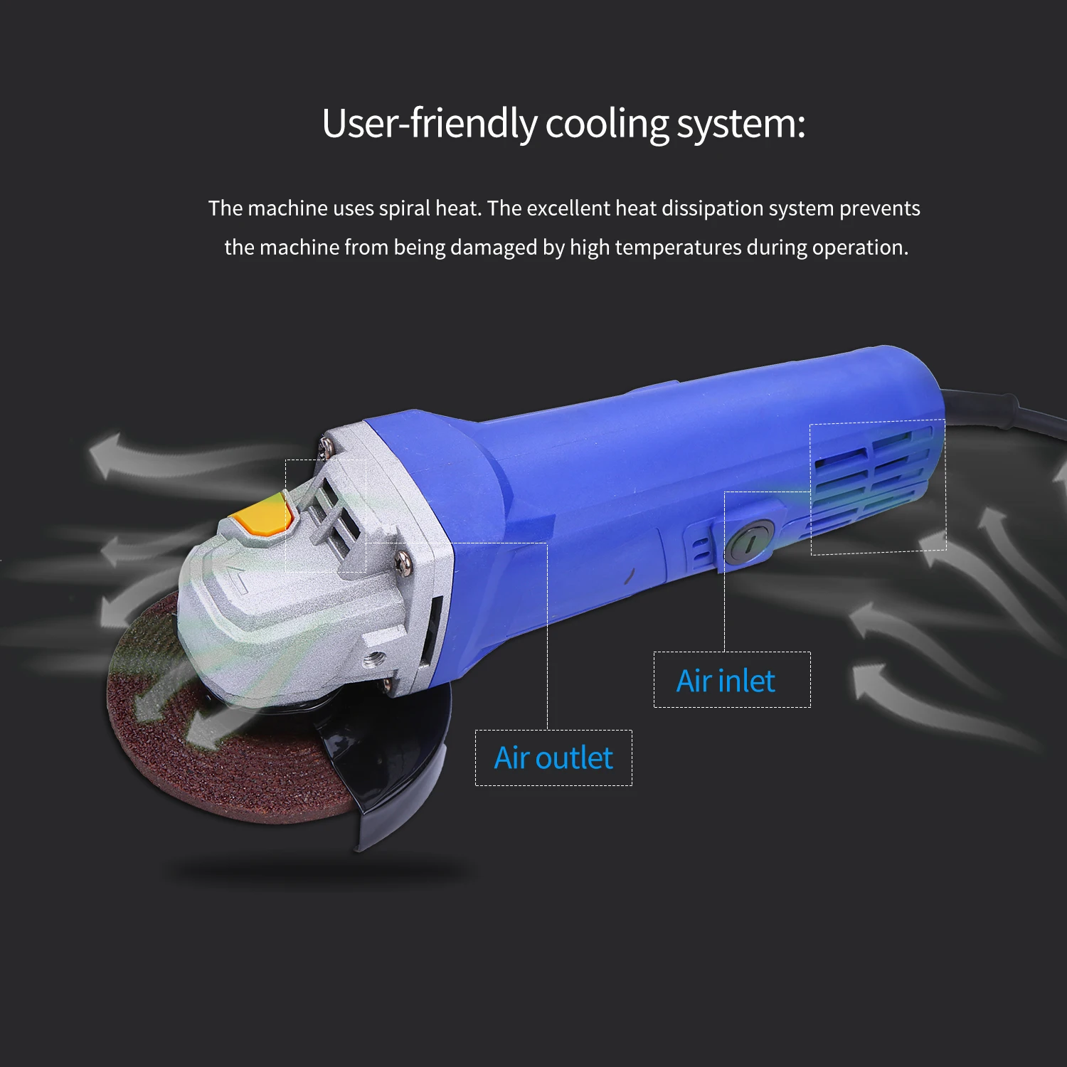 -Модернизированная система питания: высокомощные промышленные угловые шлифовальные машины, высокотемпературная медная катушка обеспечивает шлифовальный станок с большим выходным крутящим моментом и более сильной мощностью.