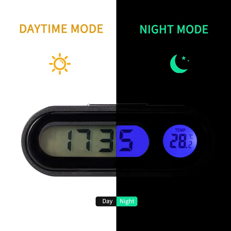 Feature: Brand new and high quality 2 in 1 design and digital display can display both time and temperature in car, support 12h/24h time display modes transformation Portable appearance, easy to use, supplied with a installing iron sheet, the iron sheet can be twist casually, one side of iron sheet is double-sided tape, convenient to stick on any places you want, then insert the iron sheet to the slot of car kit thermometer Backlight function convenient for you to view the thermometer or clock in poor light environment Specification: Item Type: 2 In 1 Car Kit Electronic Clock Thermometer Material: Plastic Screen Type: LED Digital Display Function: Time And Car Inside Temperature Display Size:8.2cm/3.23inch x 3.8cm/1.49inch. Measuring Range: -20℃-50℃ Accuracy: ±1℃ Power: CR2032 Battery (Included) Color: Black Important Note: Due to the light and screen setting difference, the item's color may be slightly different from the pictures. Please allow slight dimension difference due to different manual measurement. Package Included: 1 x 2 In 1 Car Kit Electronic Clock Thermometer NO Retail Box. Packed Safely in Bubble Bag.
