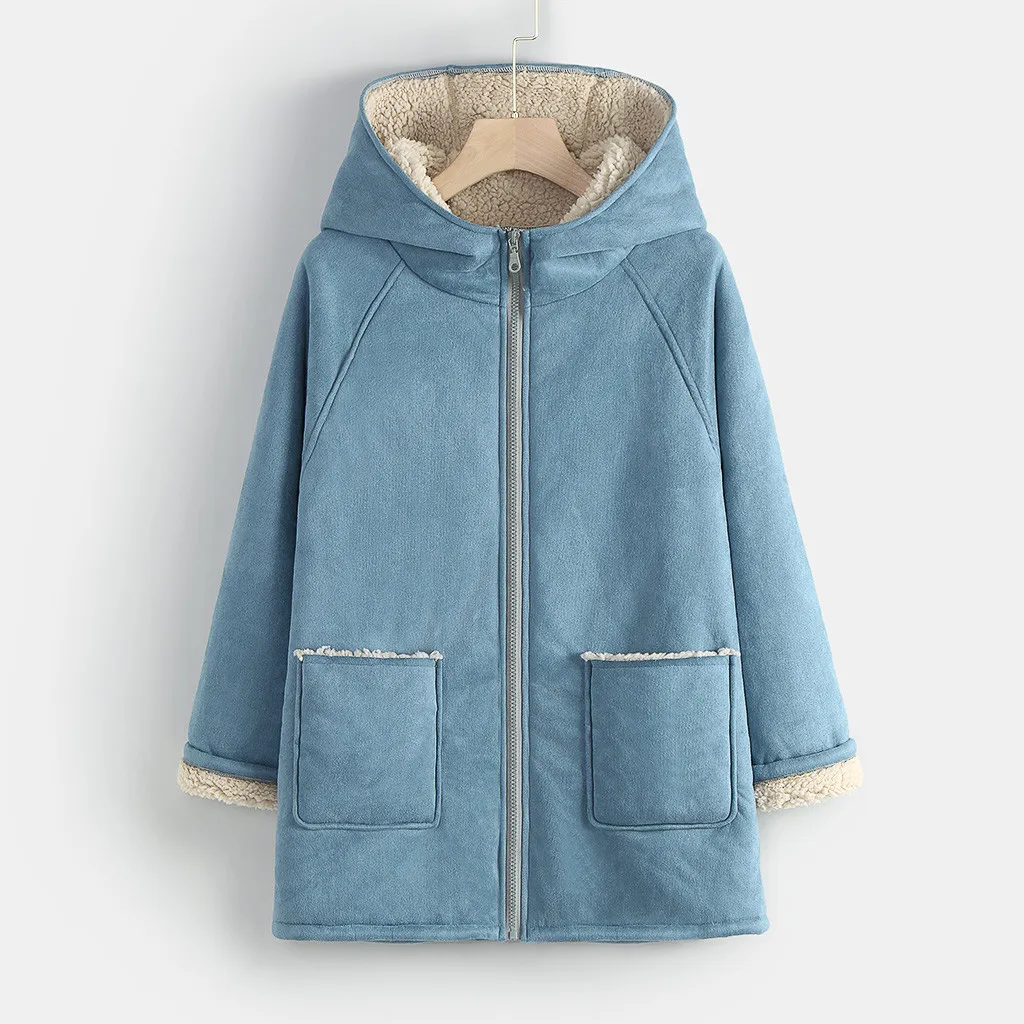 Женская мода осень и зима теплый воротник с длинными рукавами плюшевая шляпа куртка